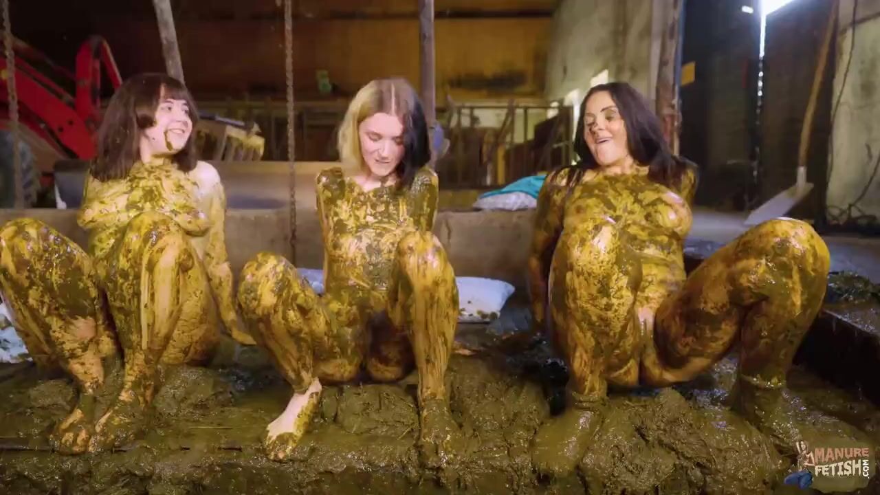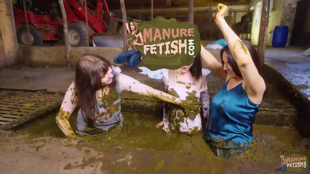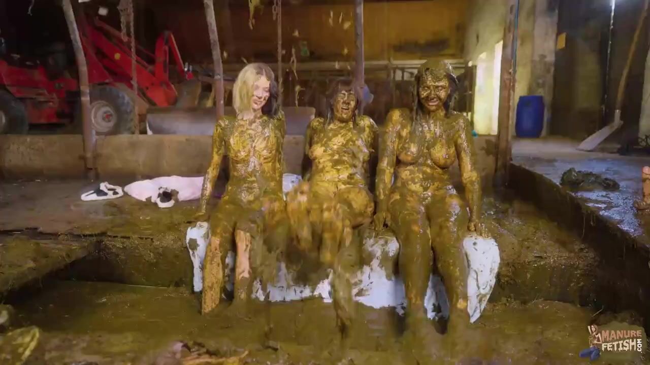 Cowshed Pyjama Party threesome in cowshit