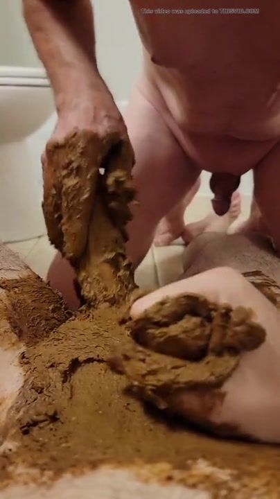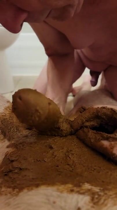 older guy poops on someones cock and smears