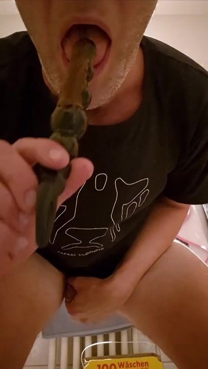 Scat boy taste shit from dildo. Shit in moth