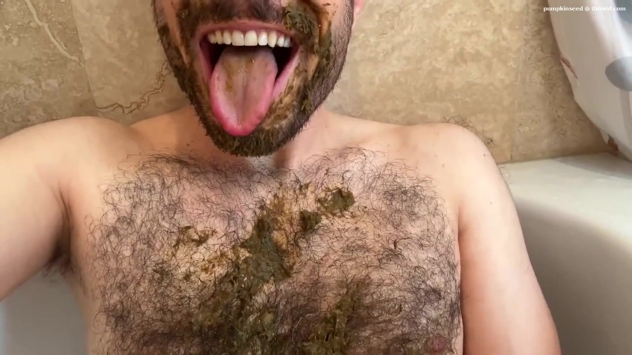 hansome young hairy guy smears and eats