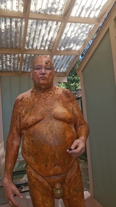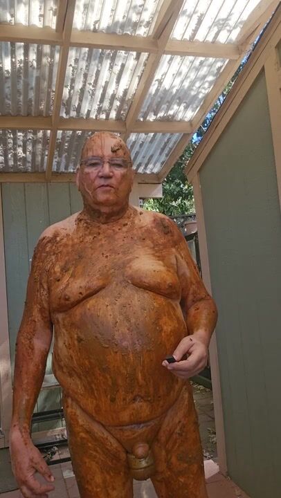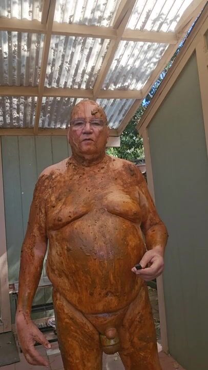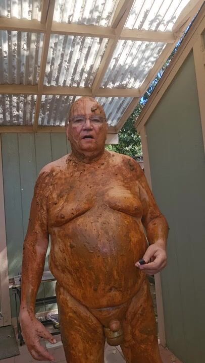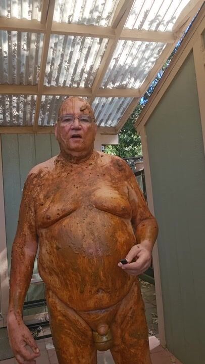 Senior bi guy covered in shit