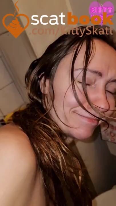 Tan beauty takes healthy shit and shows it being flushe