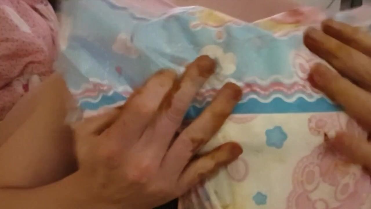 gay shit jerking with diaper on head