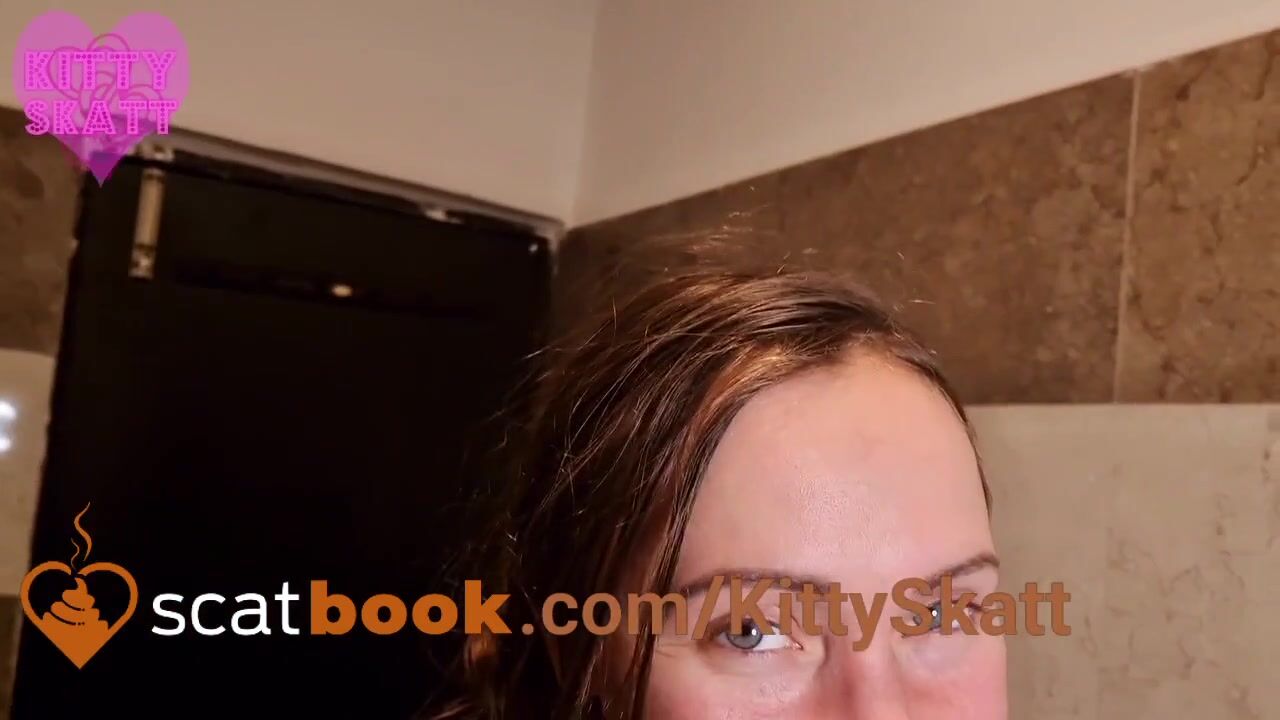 Girl open wide legs and shitting on the toilet floor
