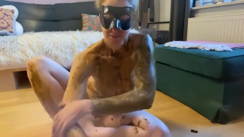 german blonde covers her body in shit