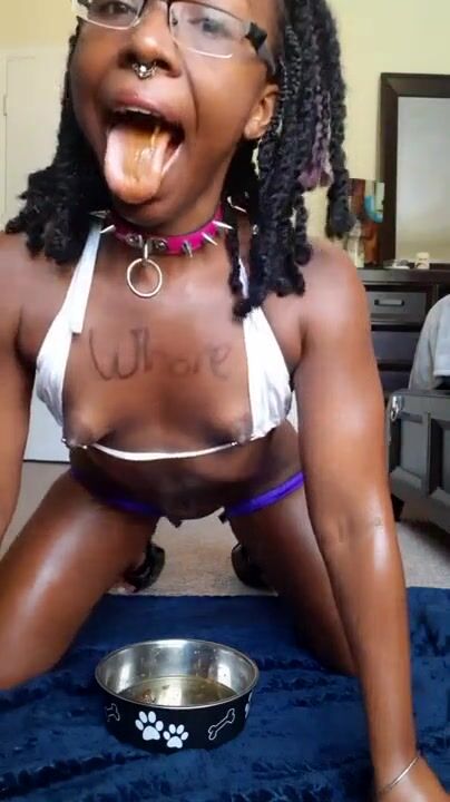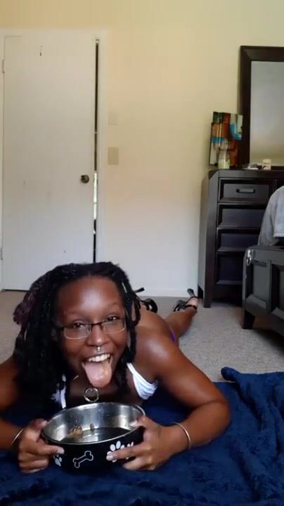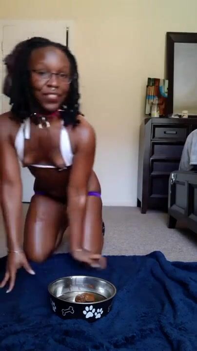 Ebony shit scat in dog bowl then eats it out