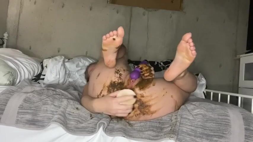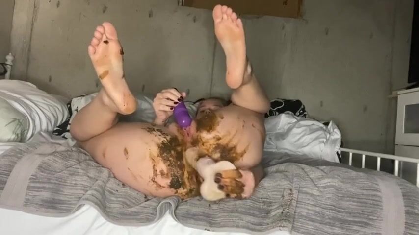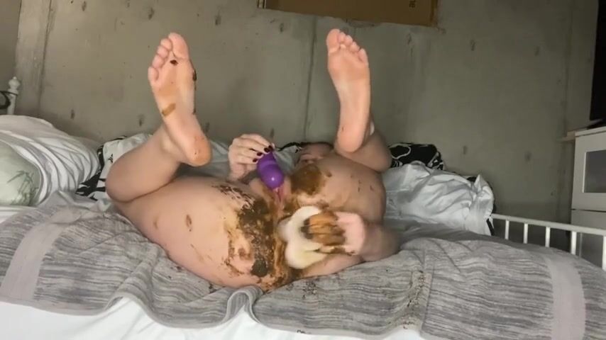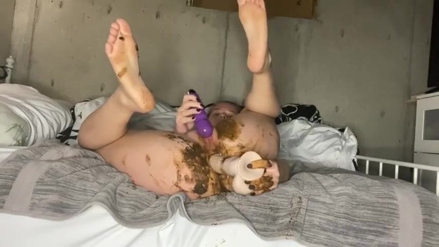 Girl panty pooping then fucking her ass with a dil