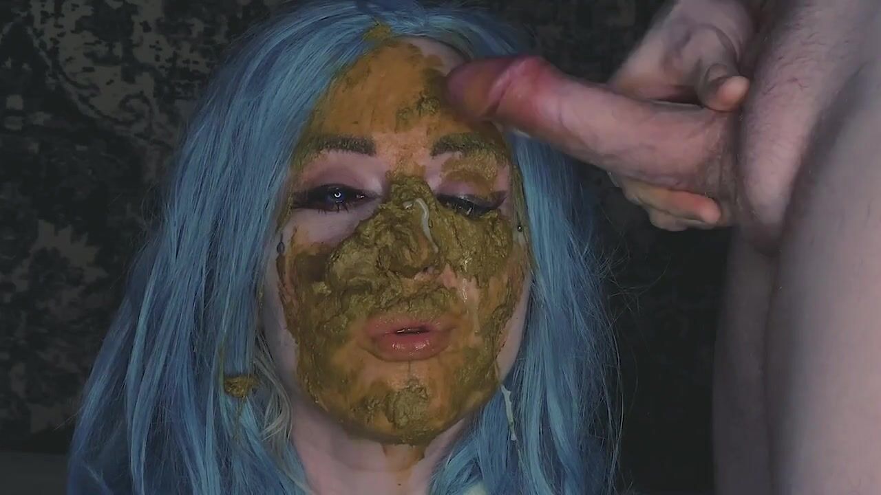 She is sucking his turd and cock then gets facial