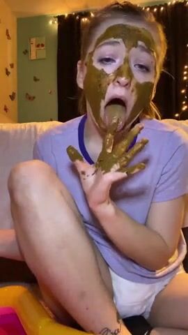 Asian girl tastes her shit