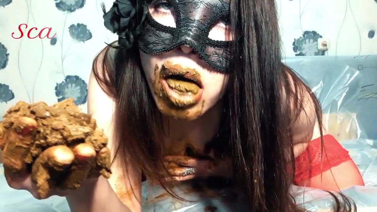 Filthy whore Scat Lina shits and eats fresh poop