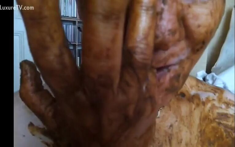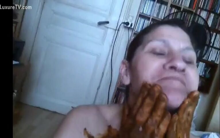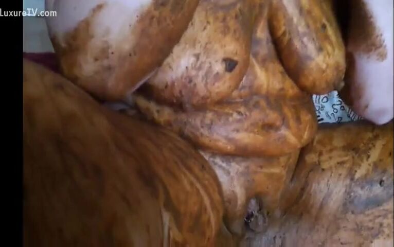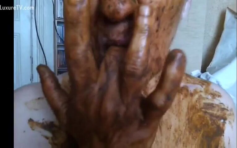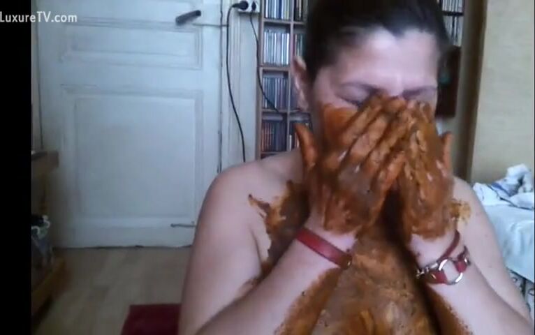 Chubby scat curious babe smears fresh shit all ove