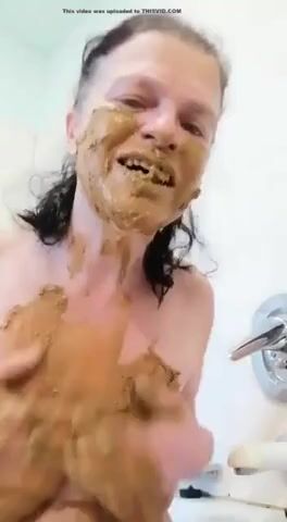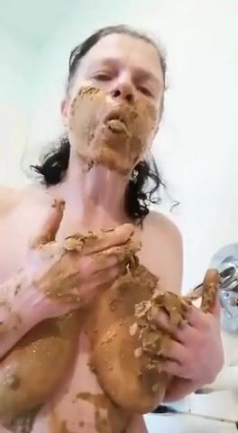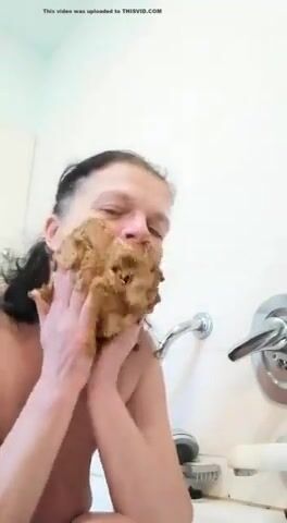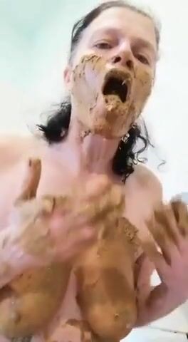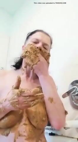 Nasty mature lady smears and gags on her shit