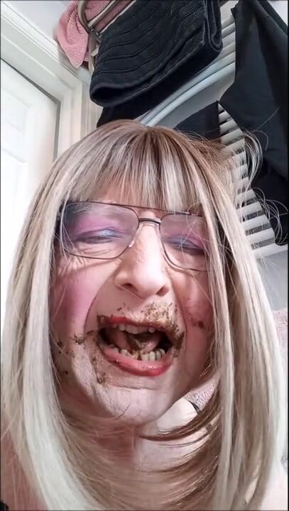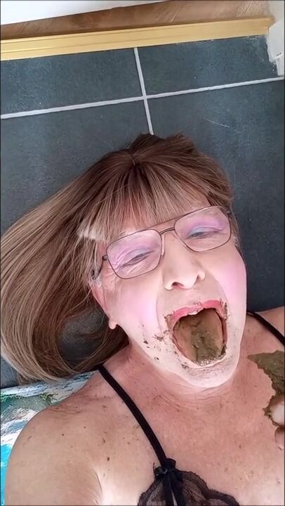 Lucky slave eating his mistress shit as breakfast