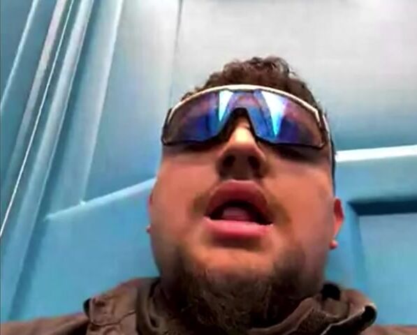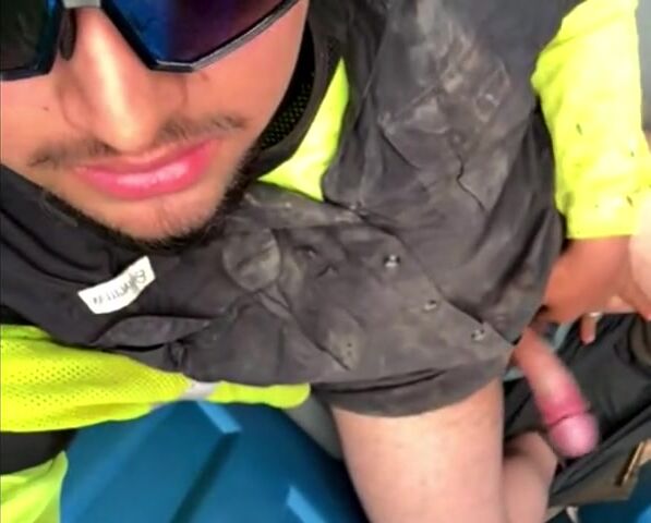 Dirty Sanchez Spits on Cock on PortaPotty at Work