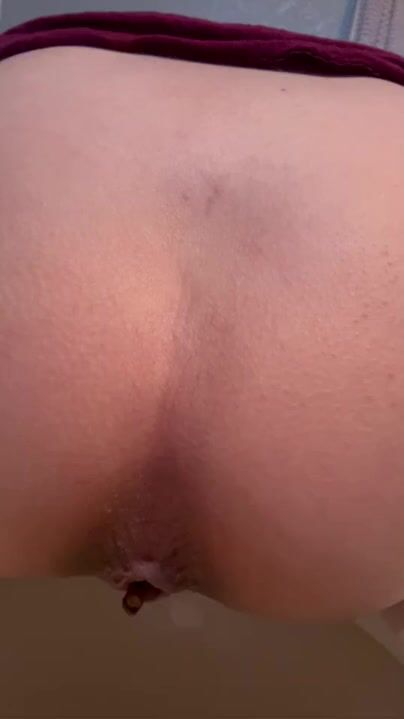 Tiny babe rips butt hole taking shit!