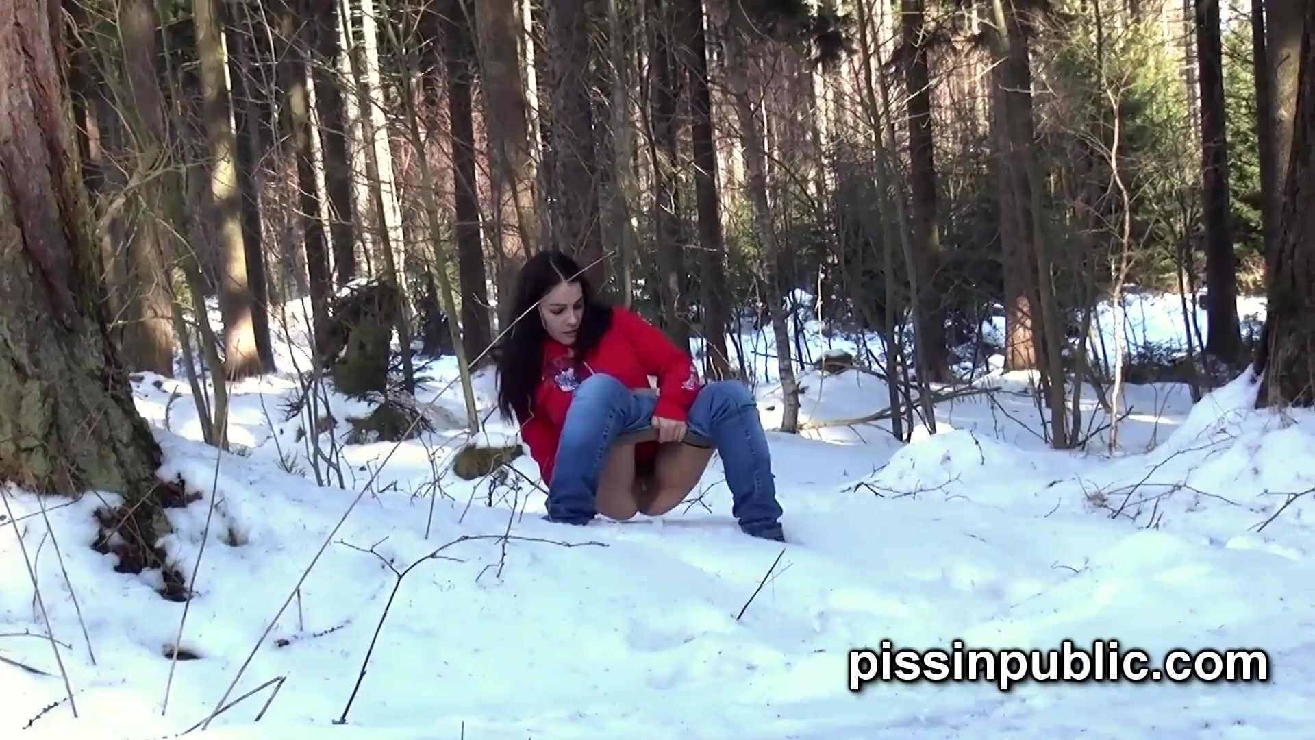 Desperate pee babes want to release their piss streams even in snowy winter