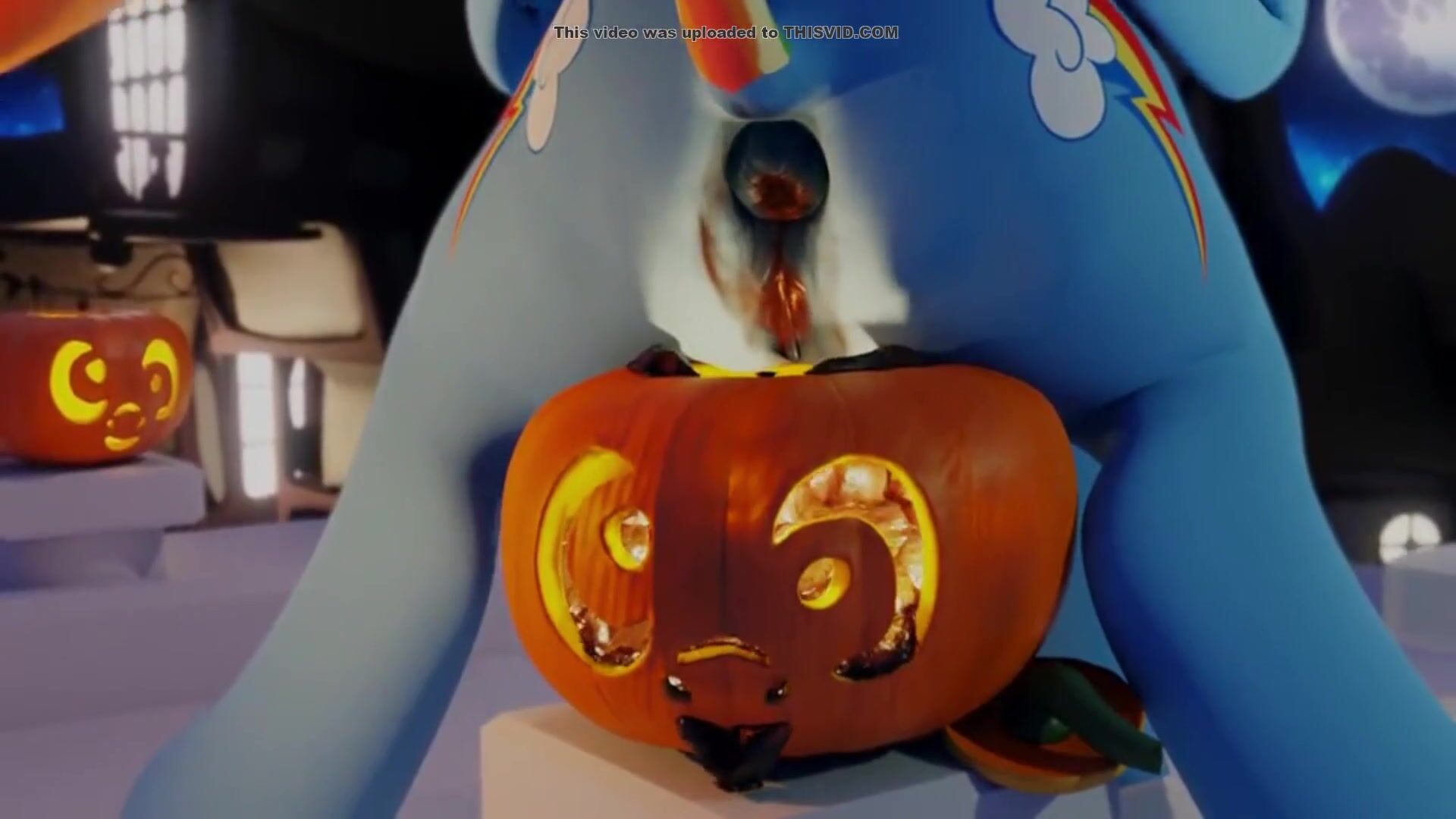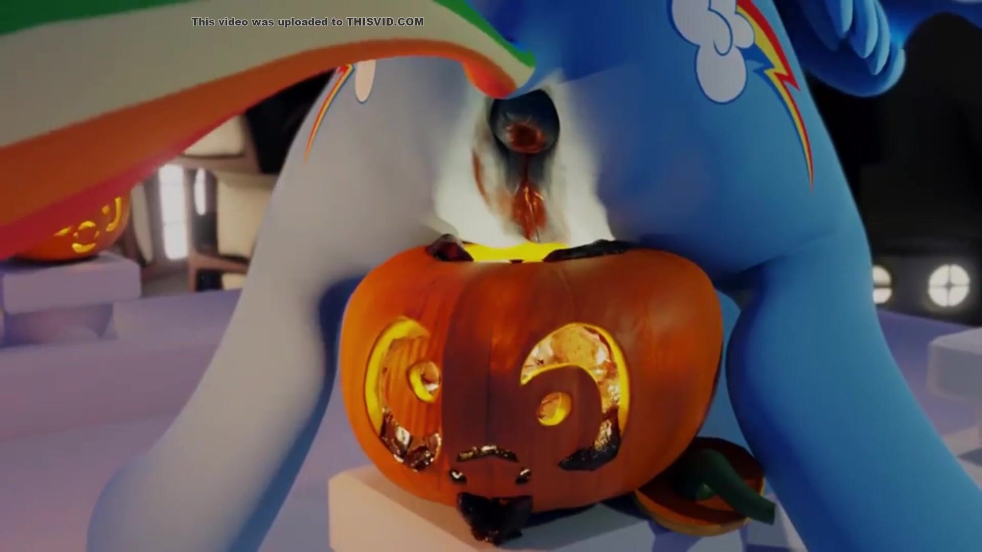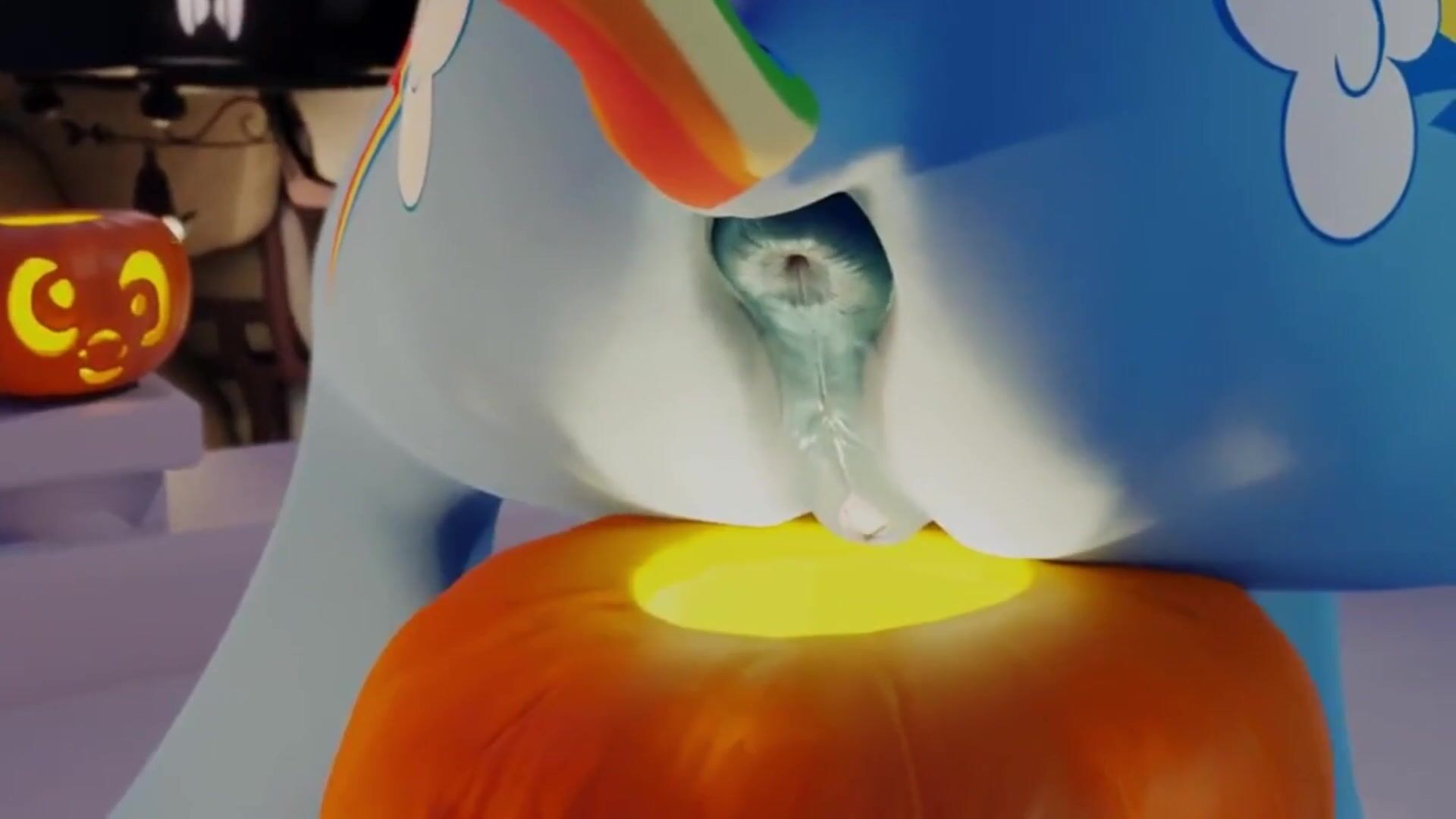 Rainbow Dash shitting in a pumpkin