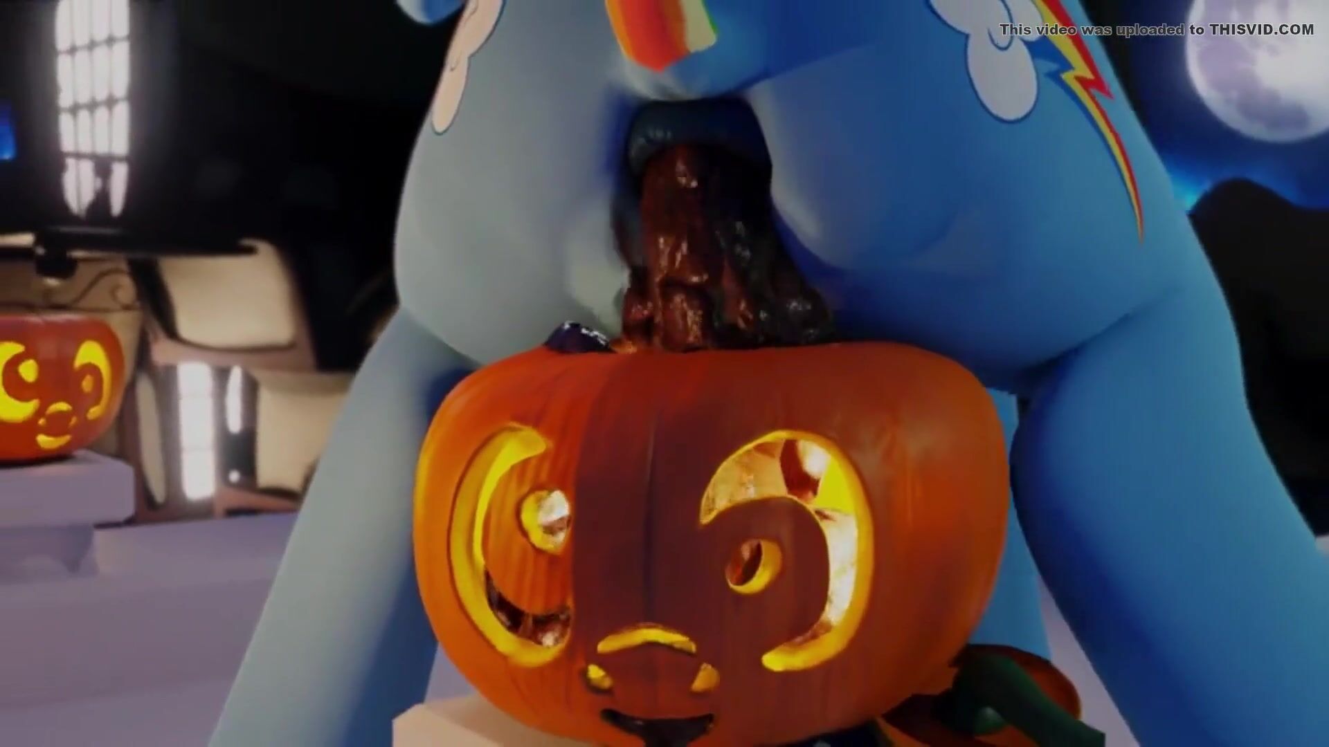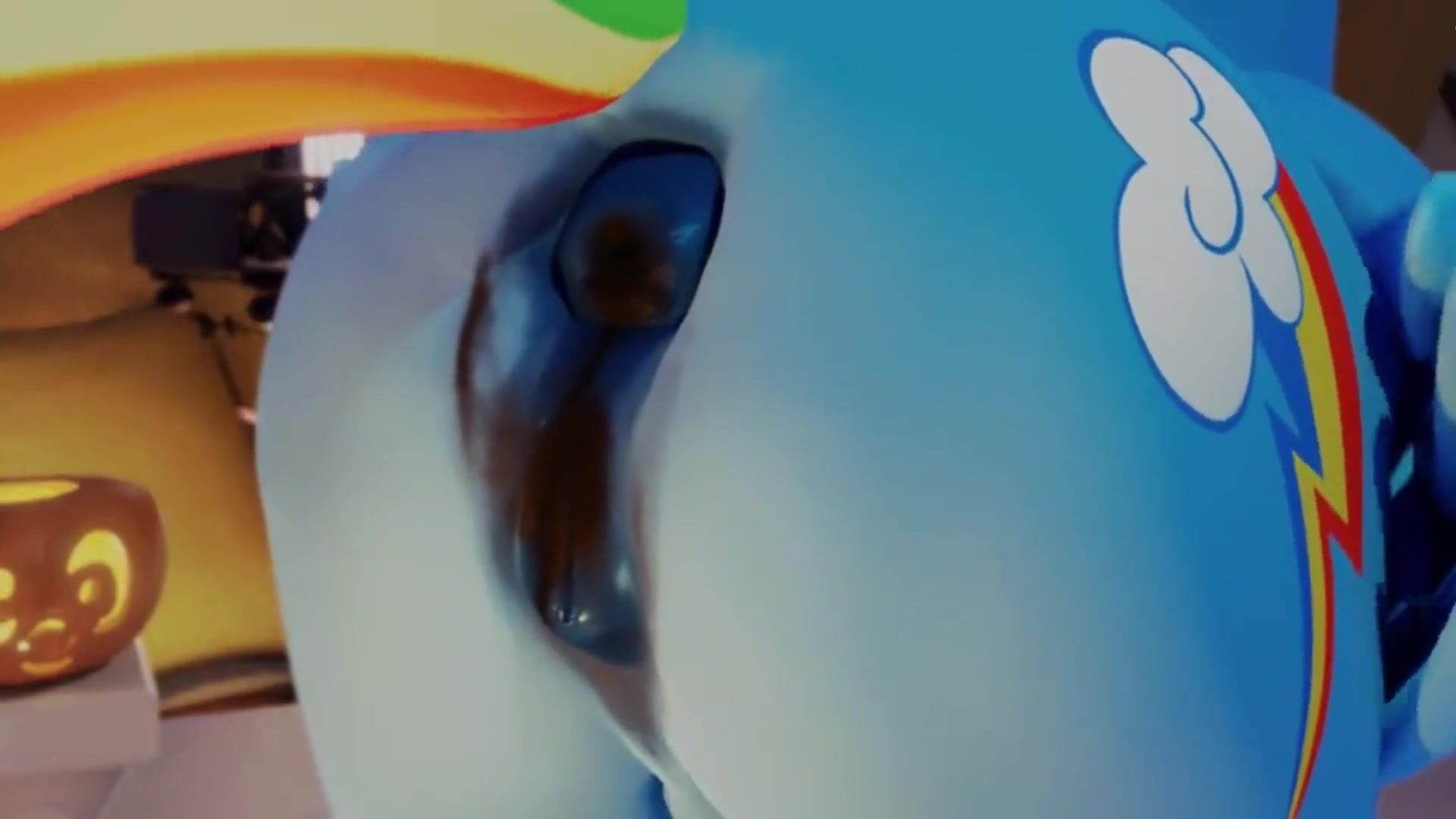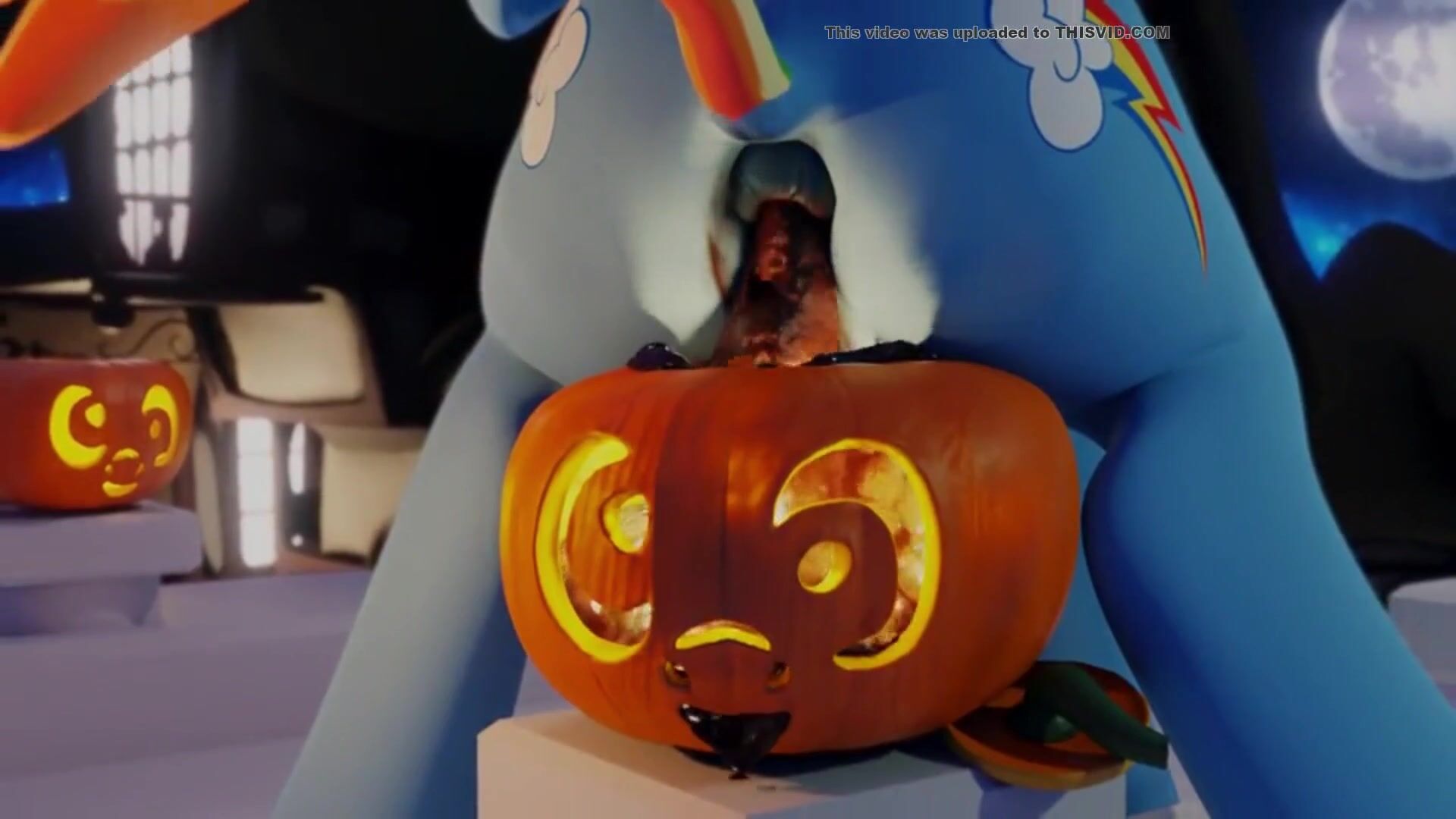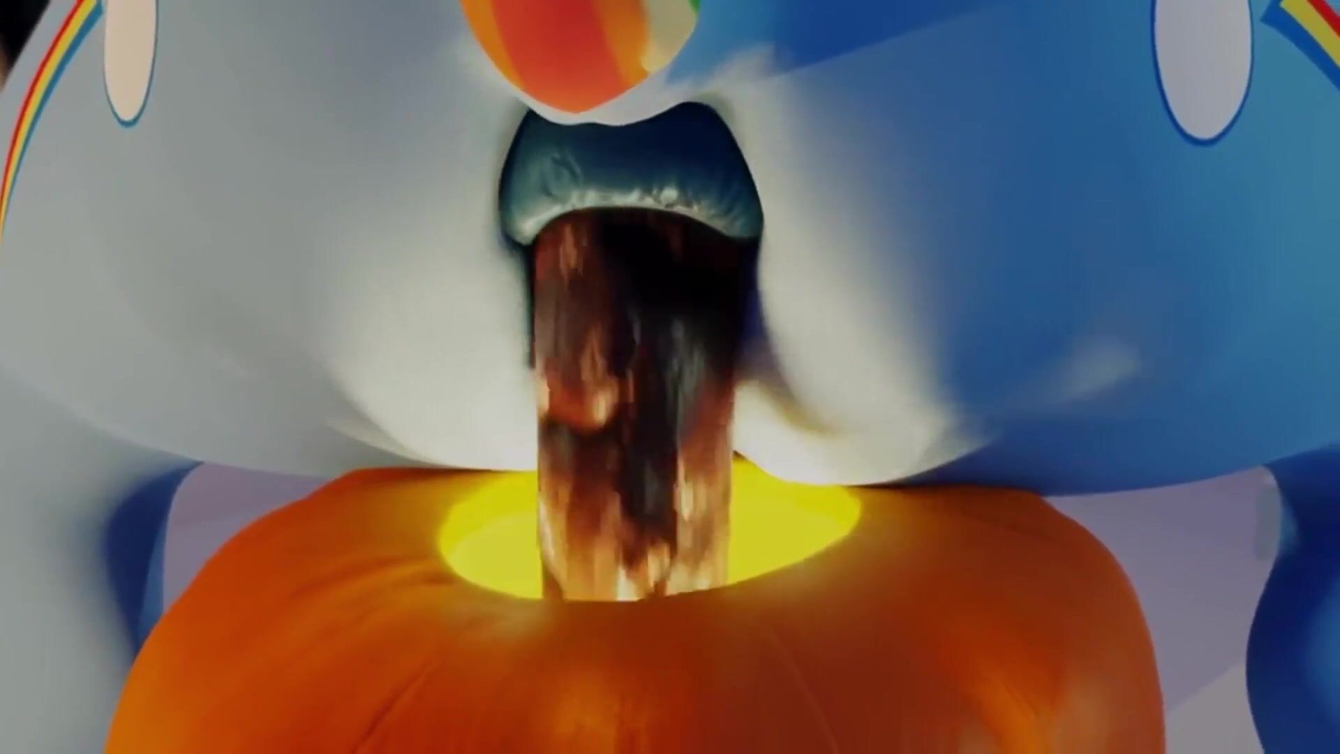 Rainbow Dash shitting in a pumpkin