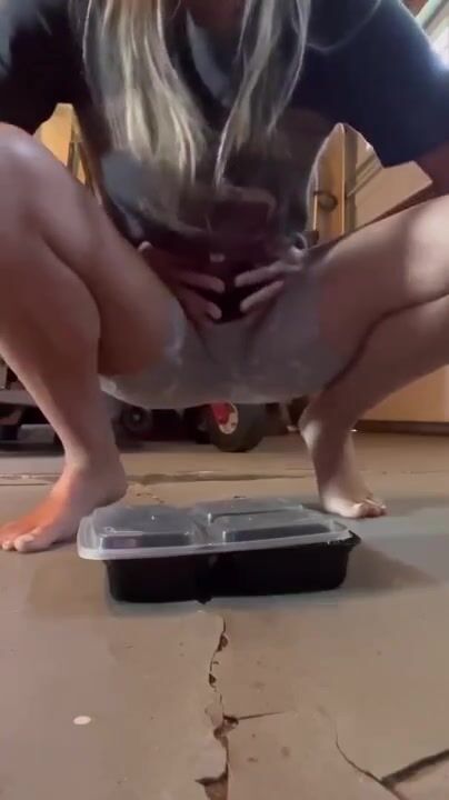 Hot chick shits in container