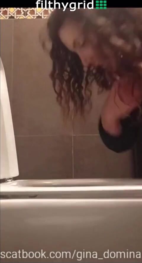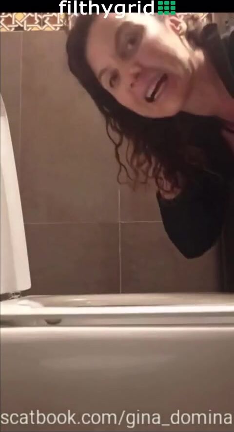 Dirty woman pooping on toilet