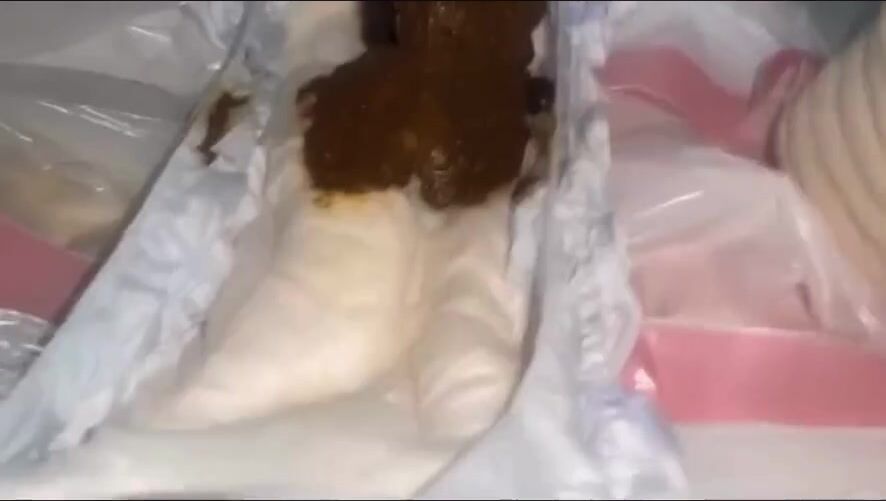 Changing her own messy diaper