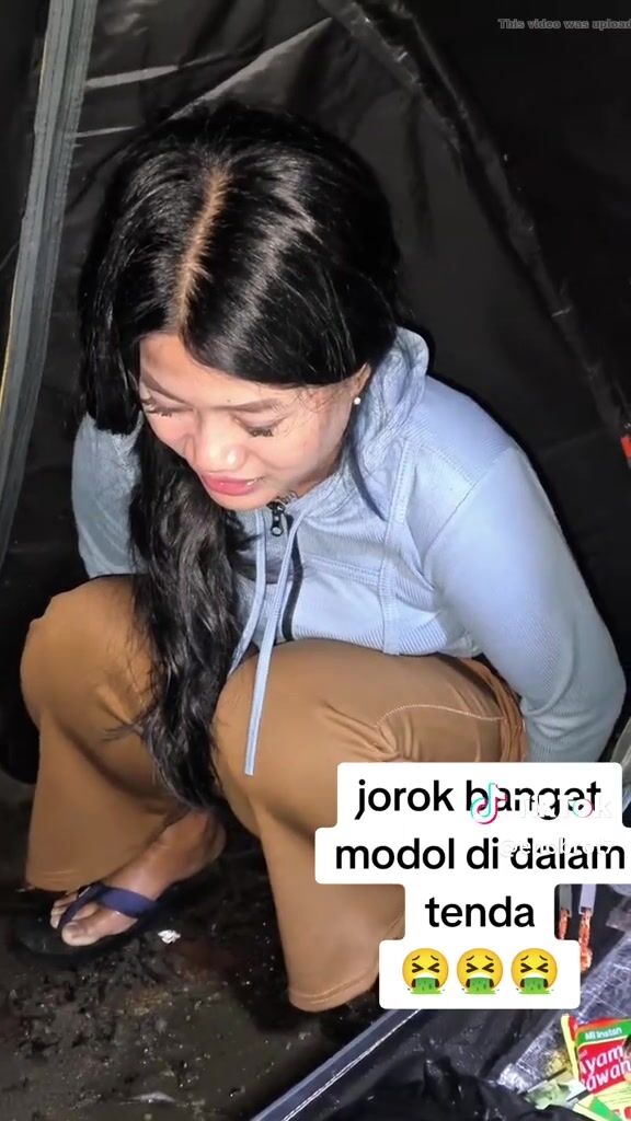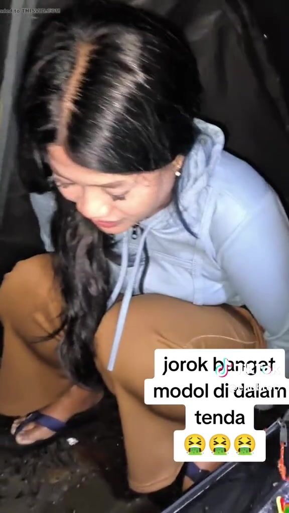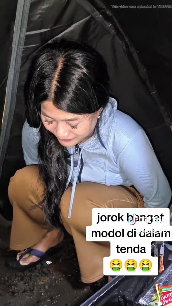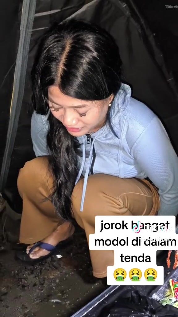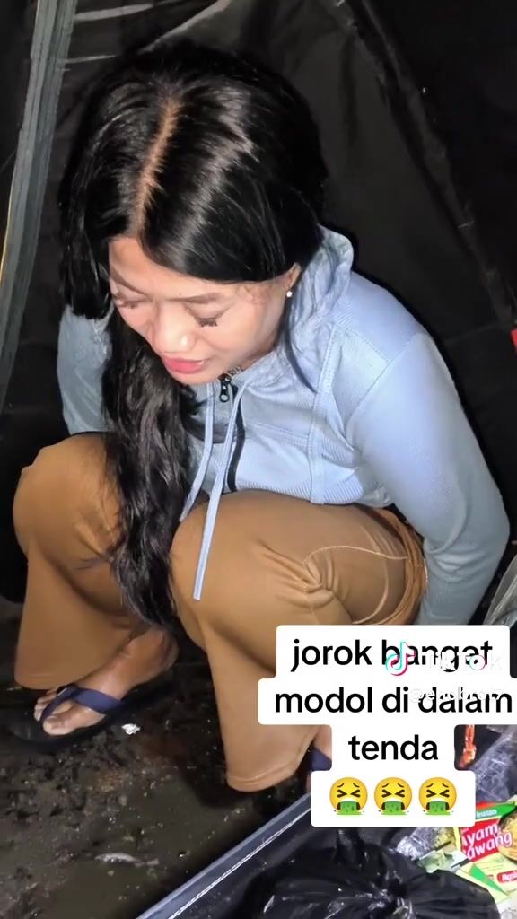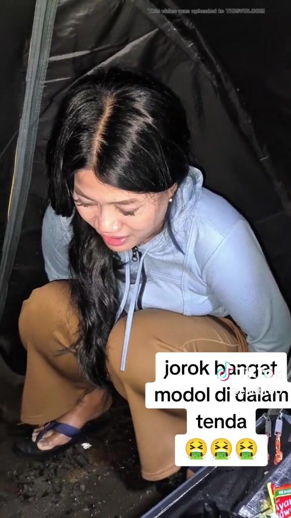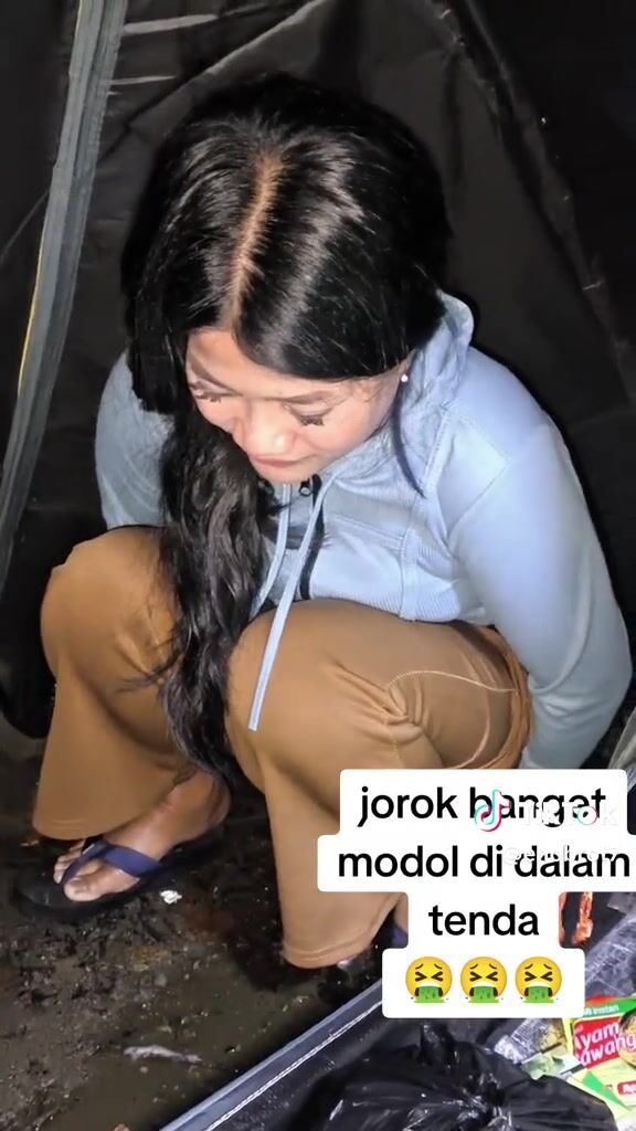 ТТ girl poops in a bag in the tent