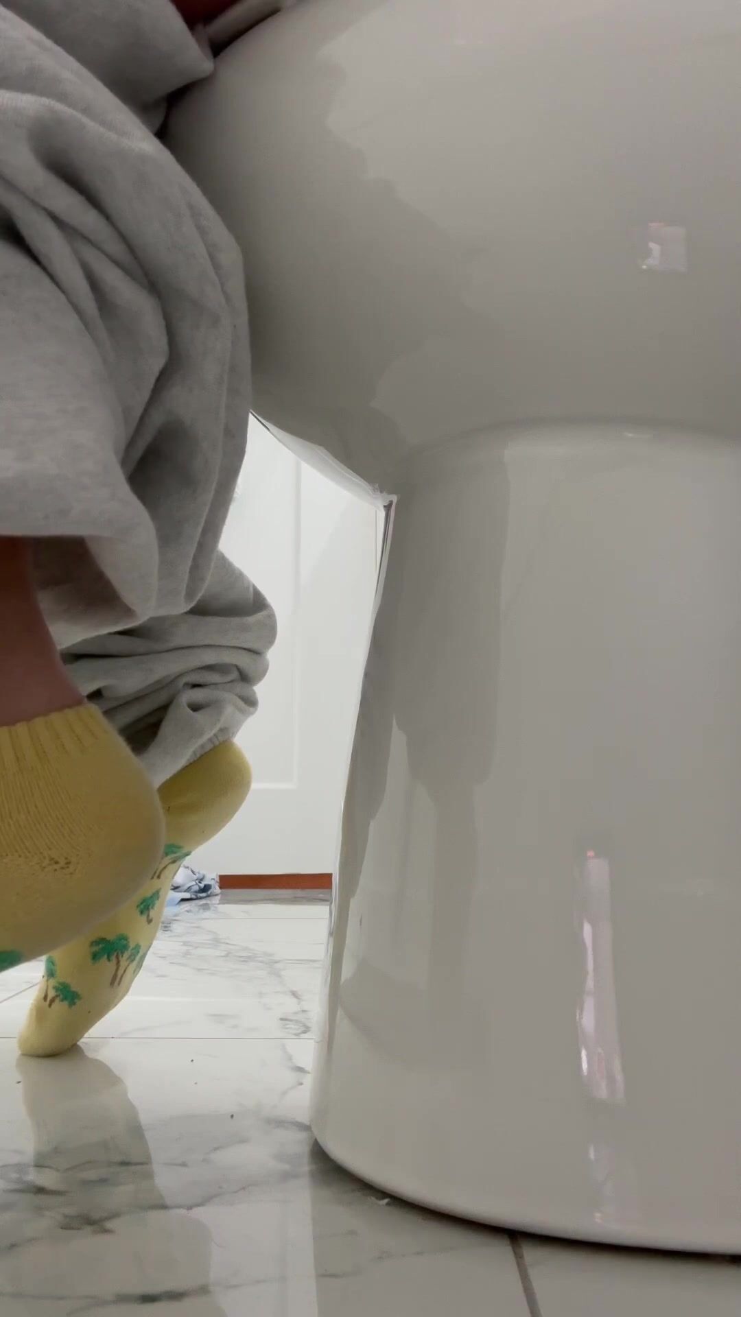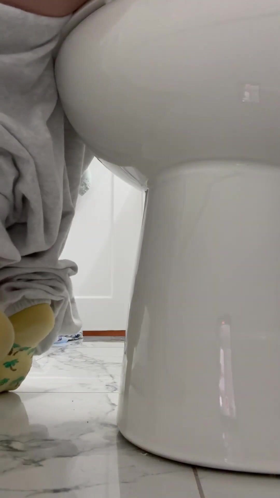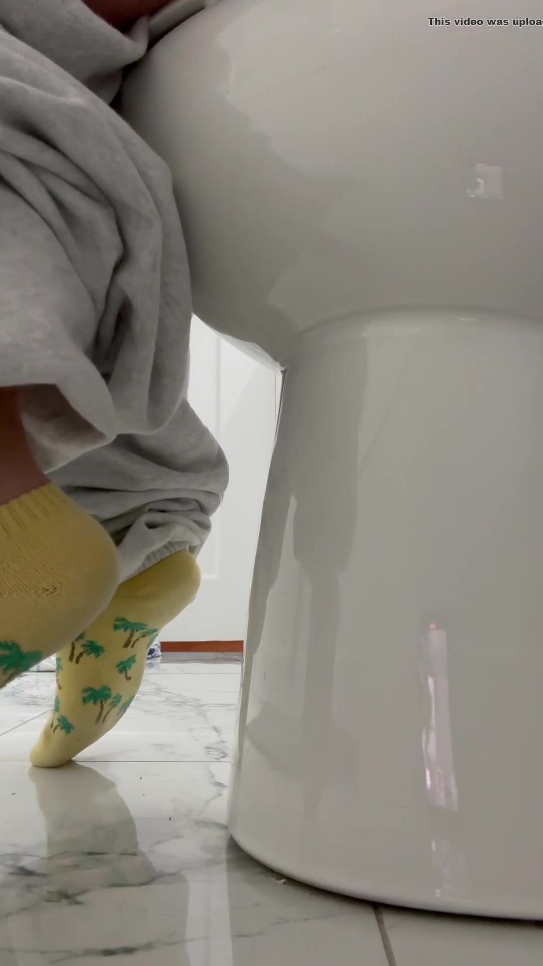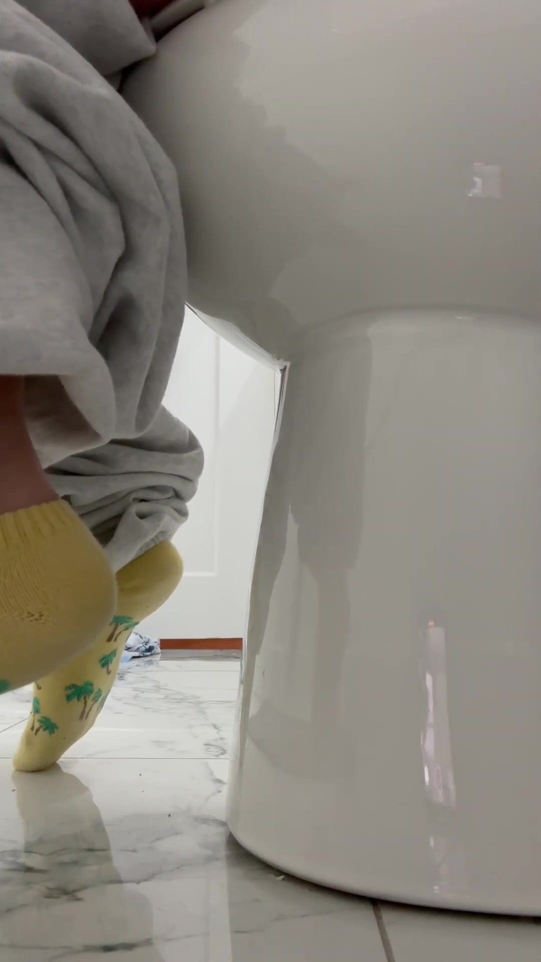 Girl open wide legs and shitting on the toilet floor