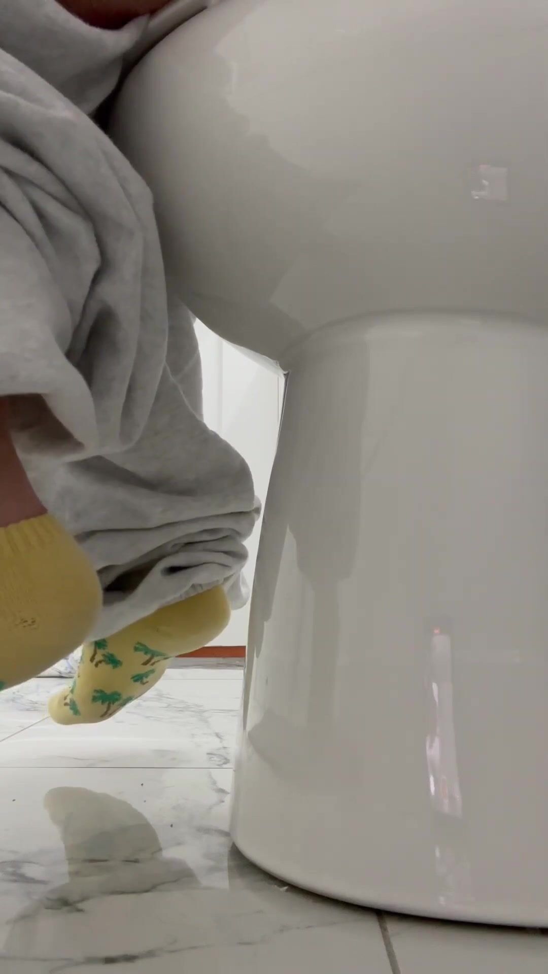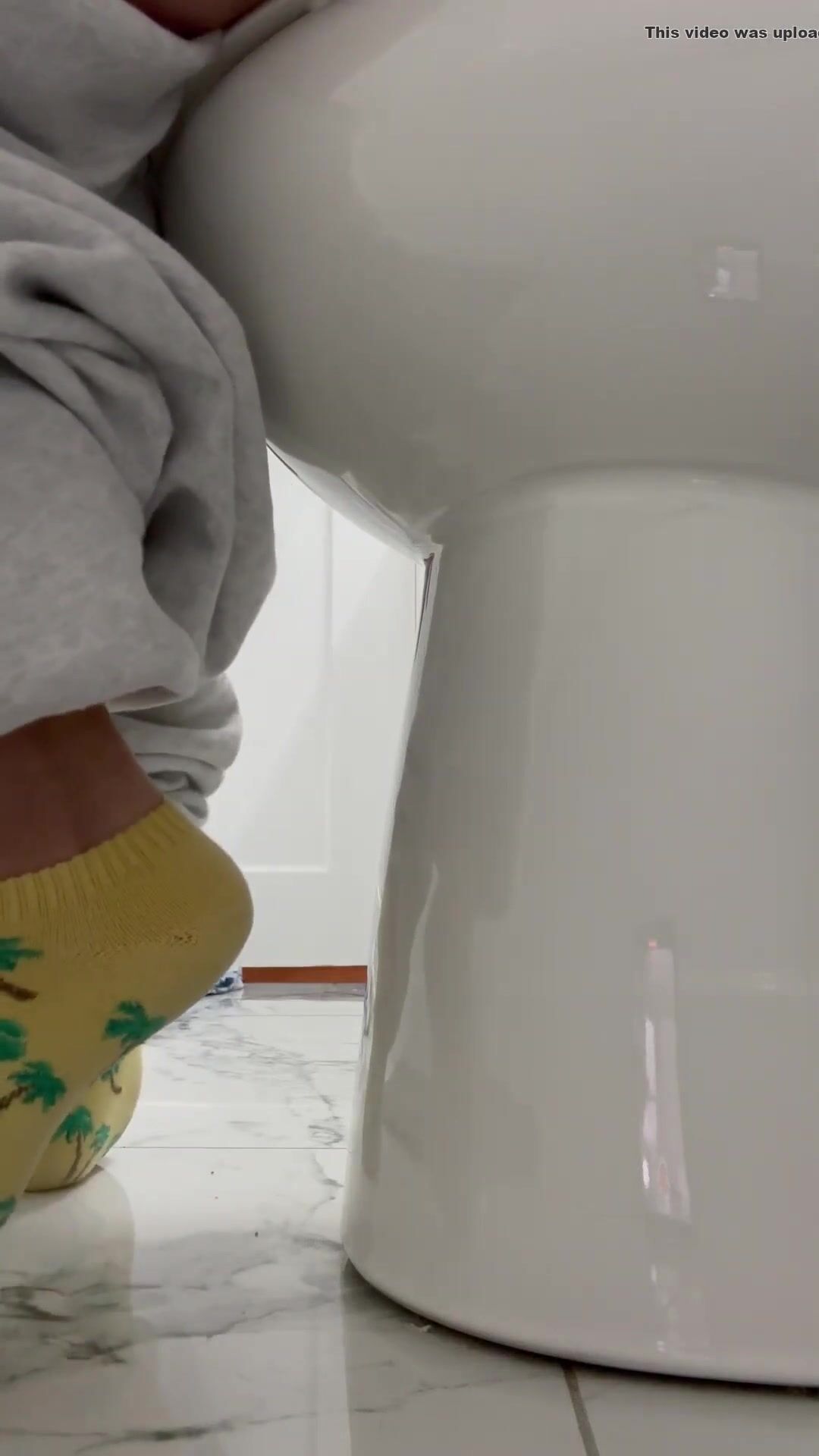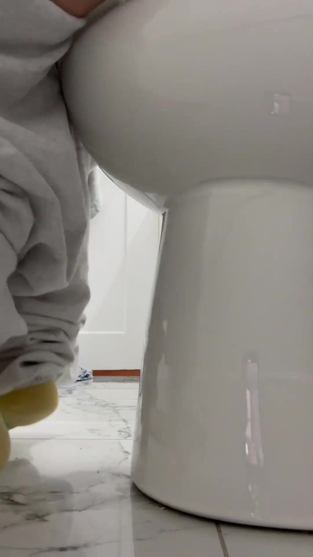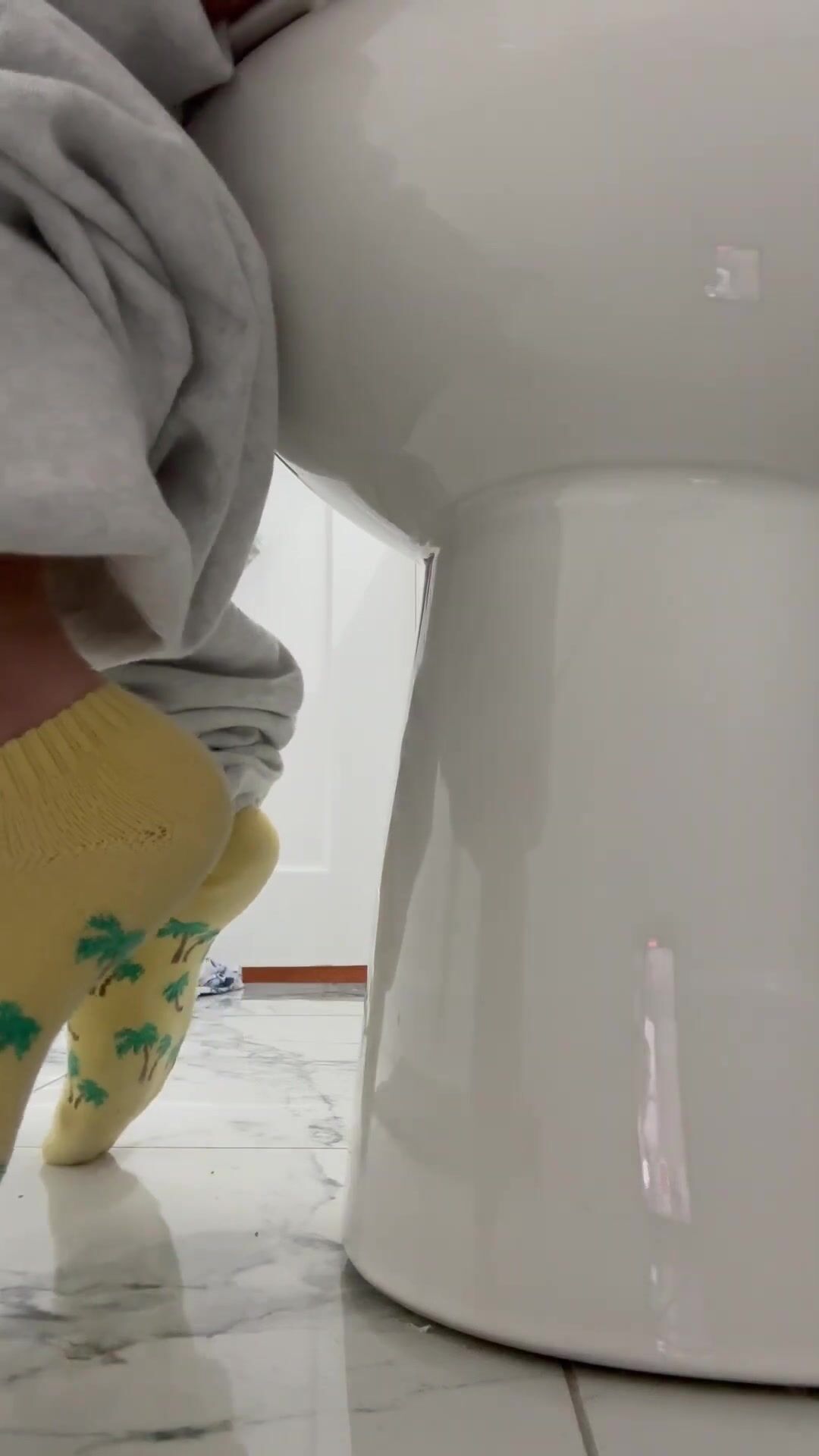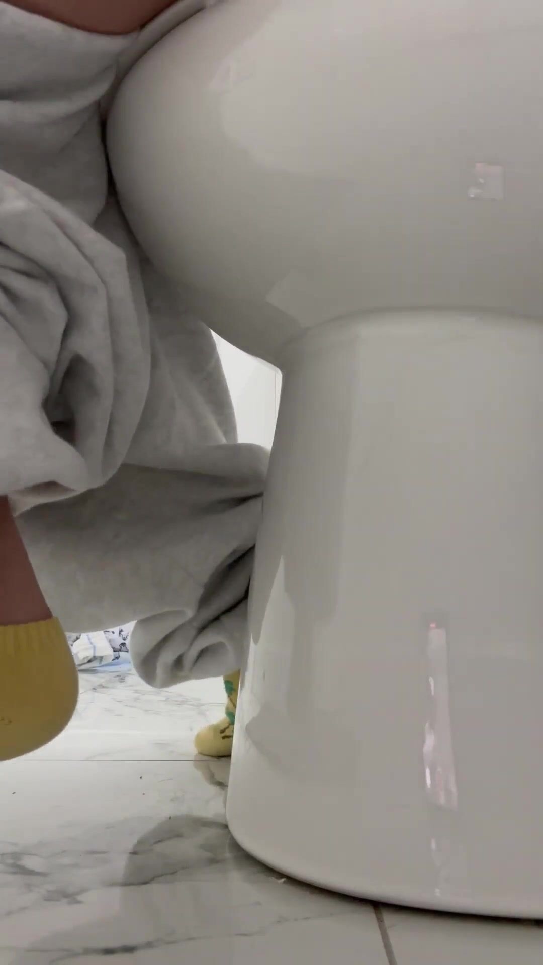 Girl open wide legs and shitting on the toilet floor