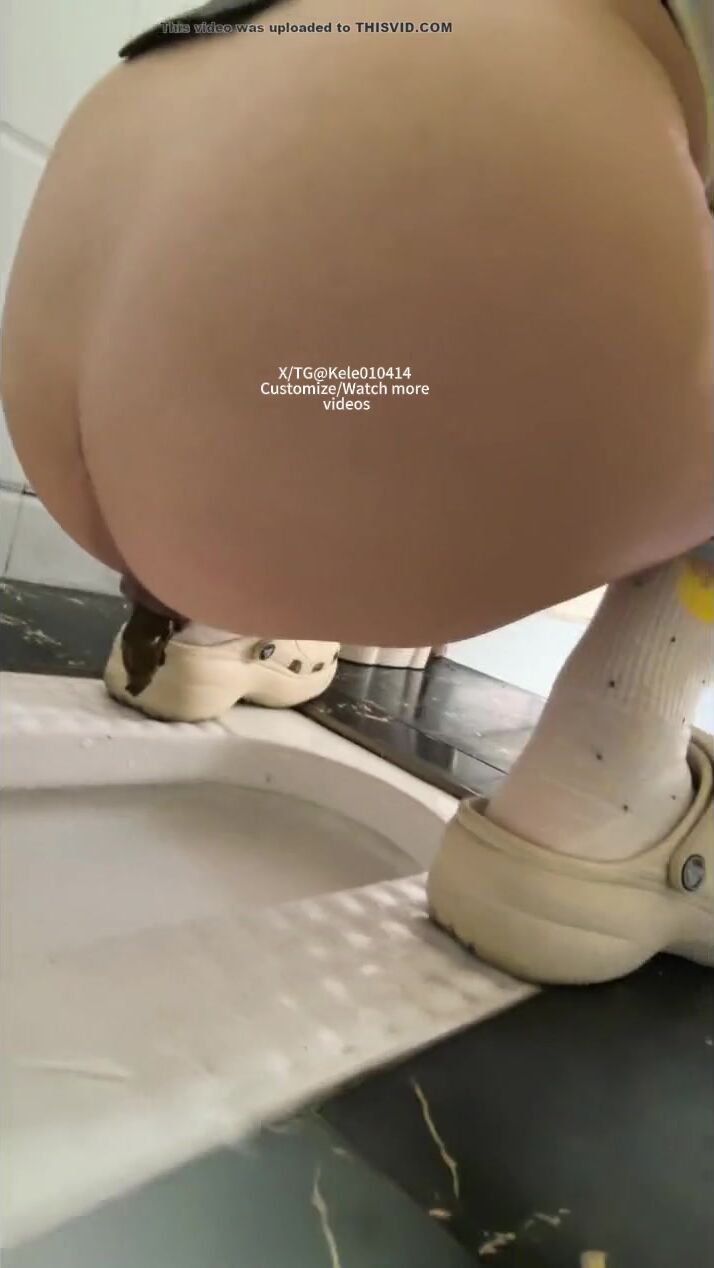 A girl defecated and urinated in a public toilet.