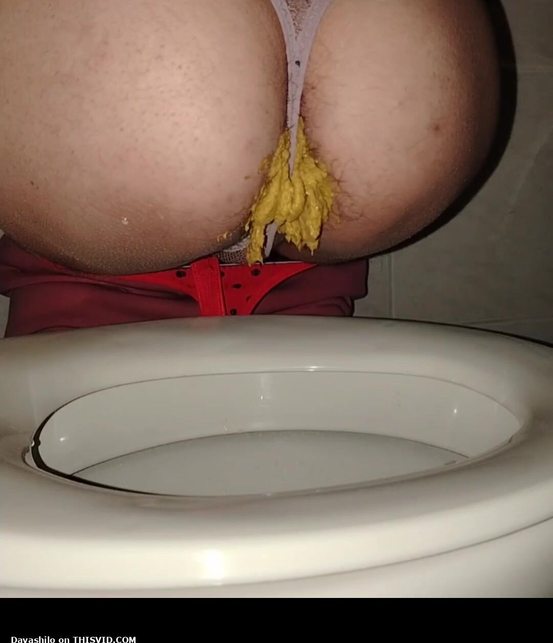 Girl open wide legs and shitting on the toilet floor