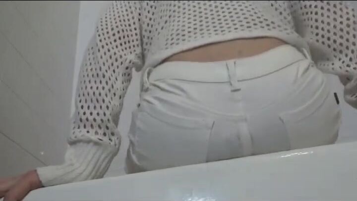 Beautiful girl fills her pants and then reveals her ful