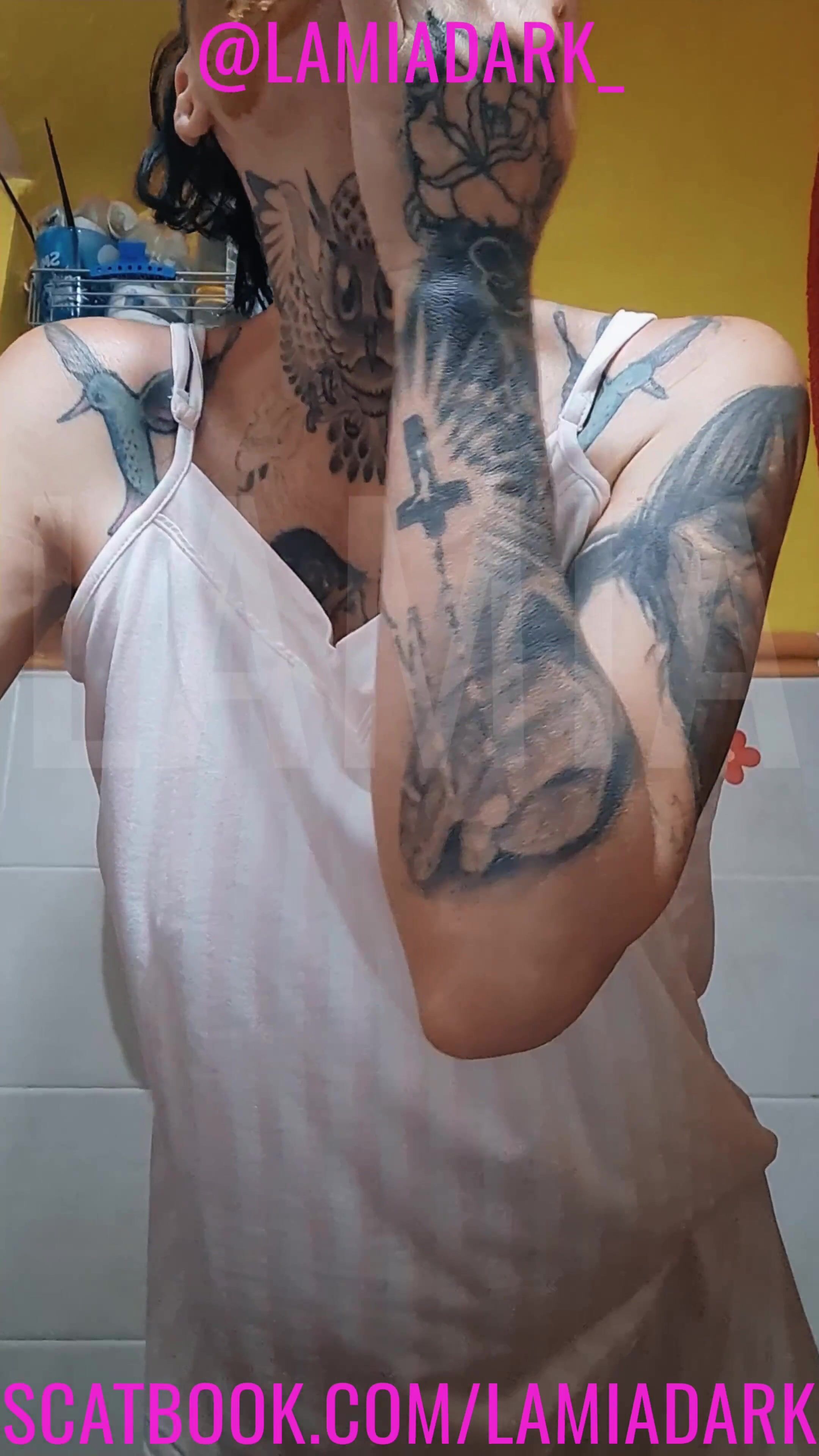 Girl shitting in the shower and smering it on body
