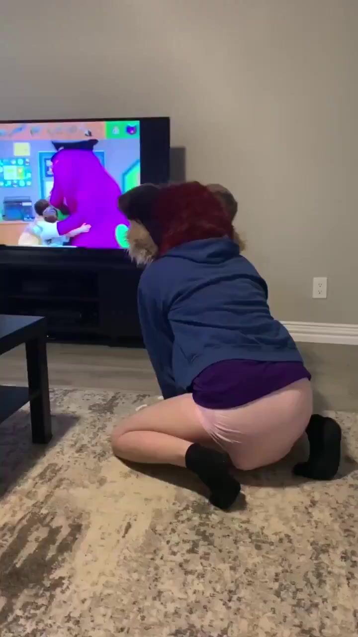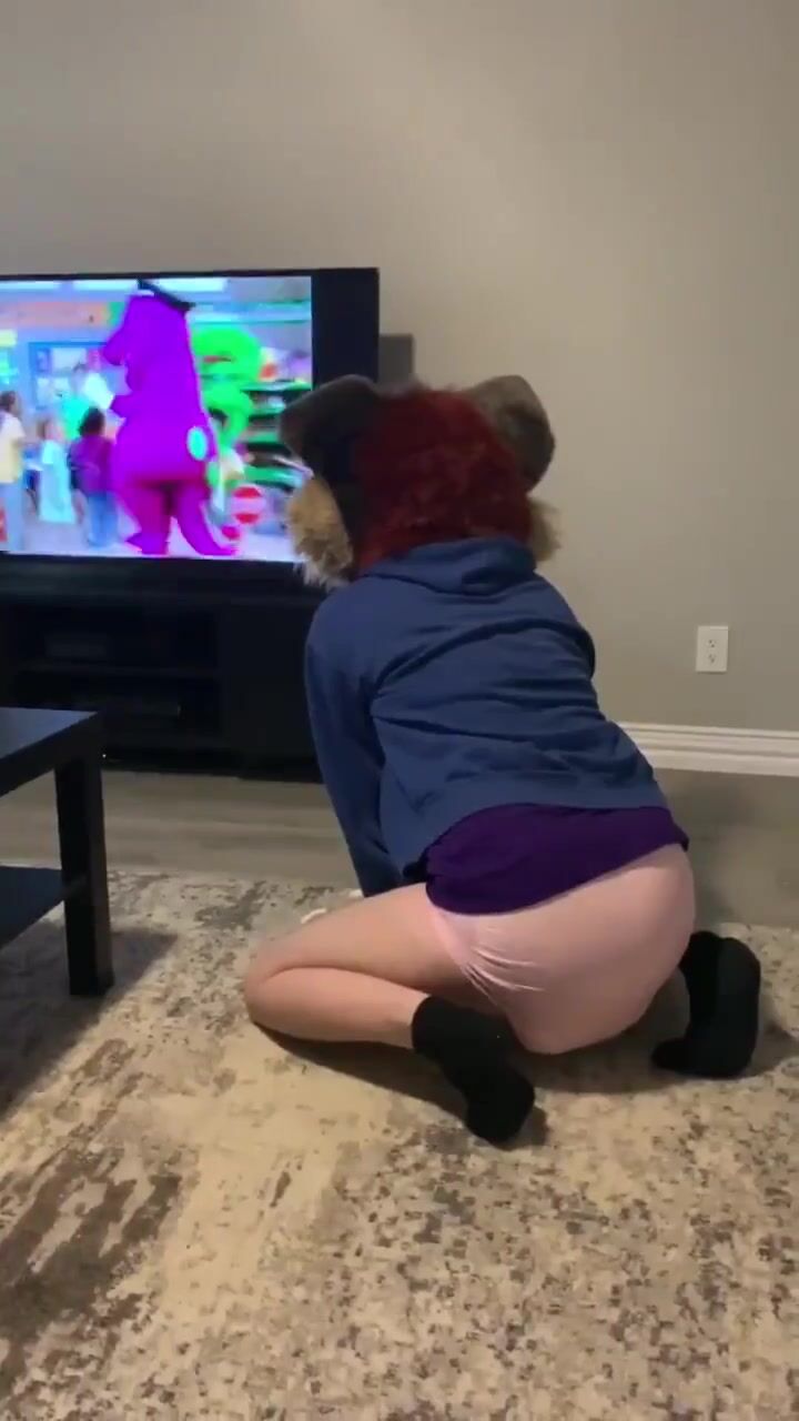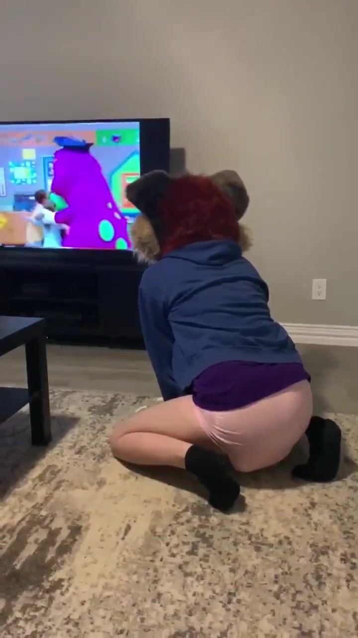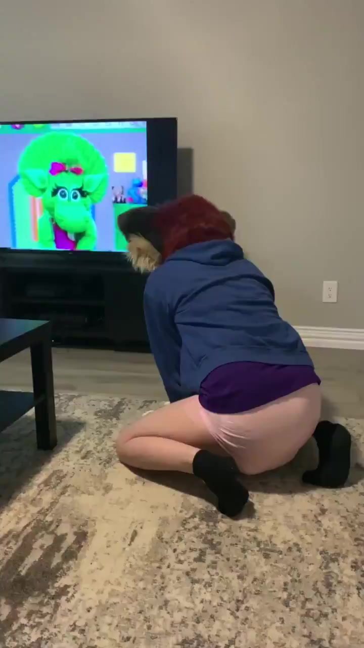 furry watches barney and makes pushies in diaper