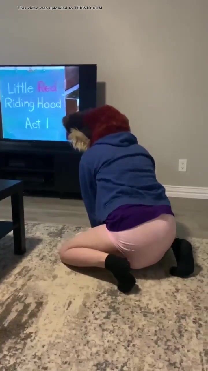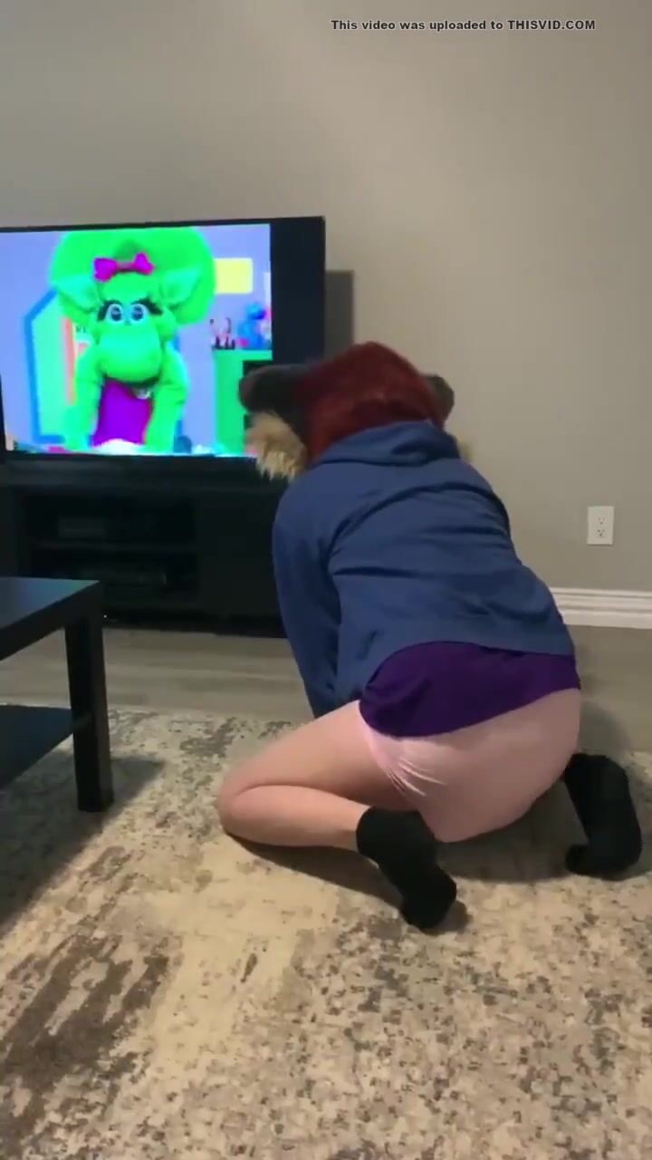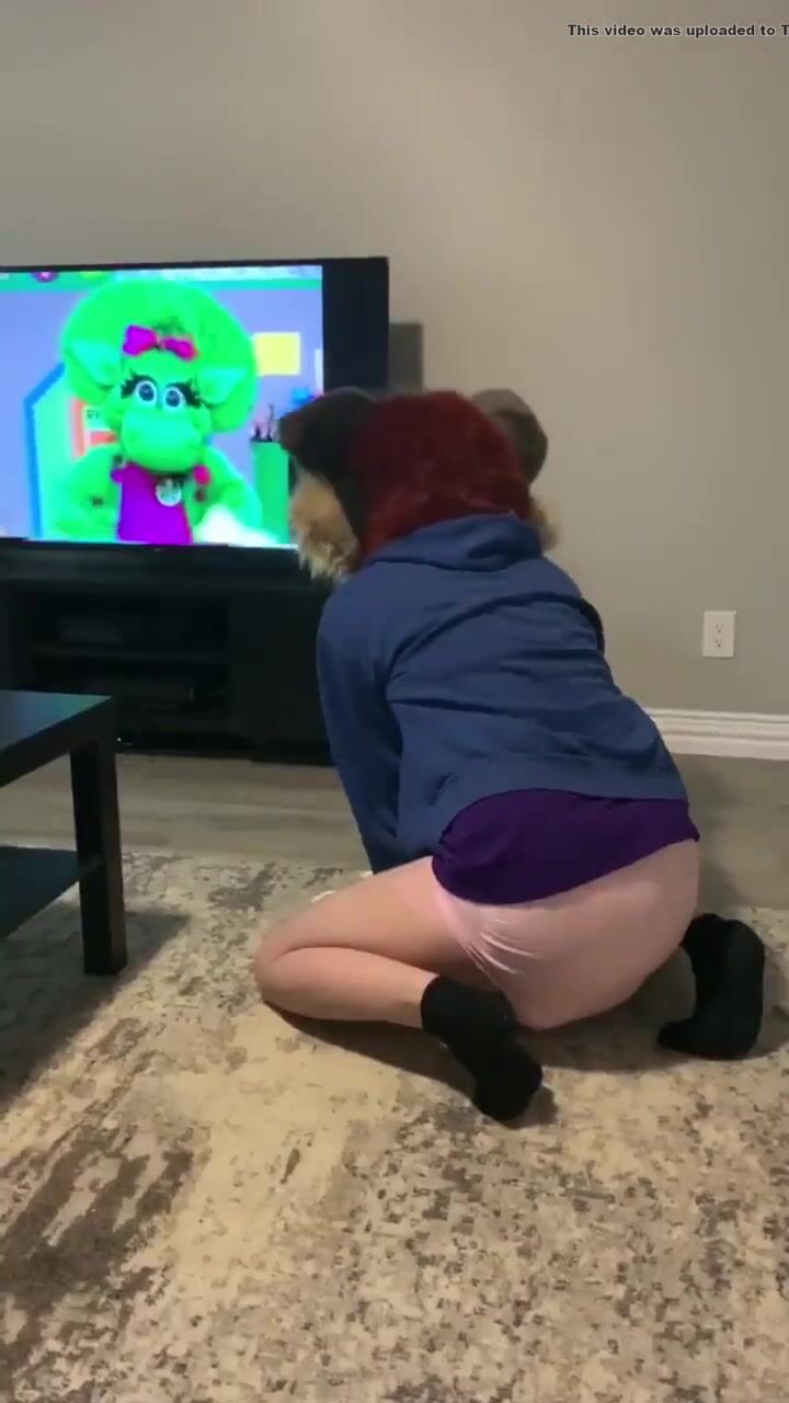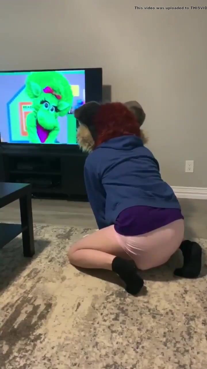 furry watches barney and makes pushies in diaper