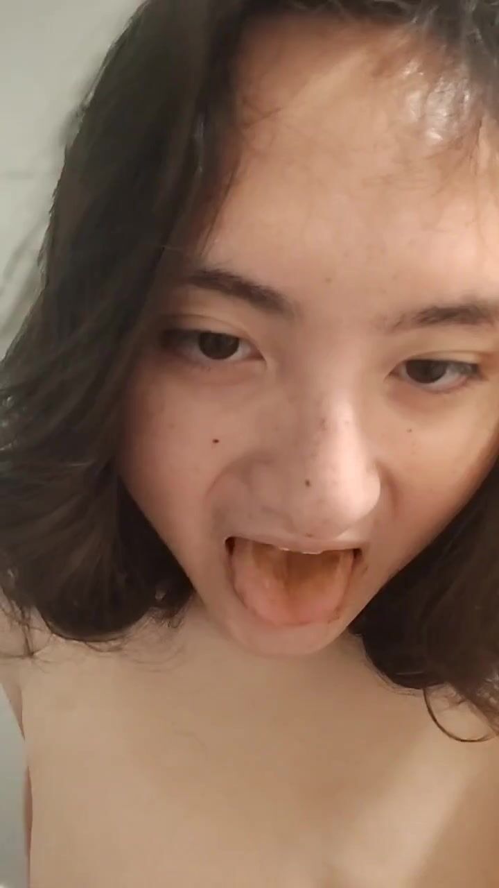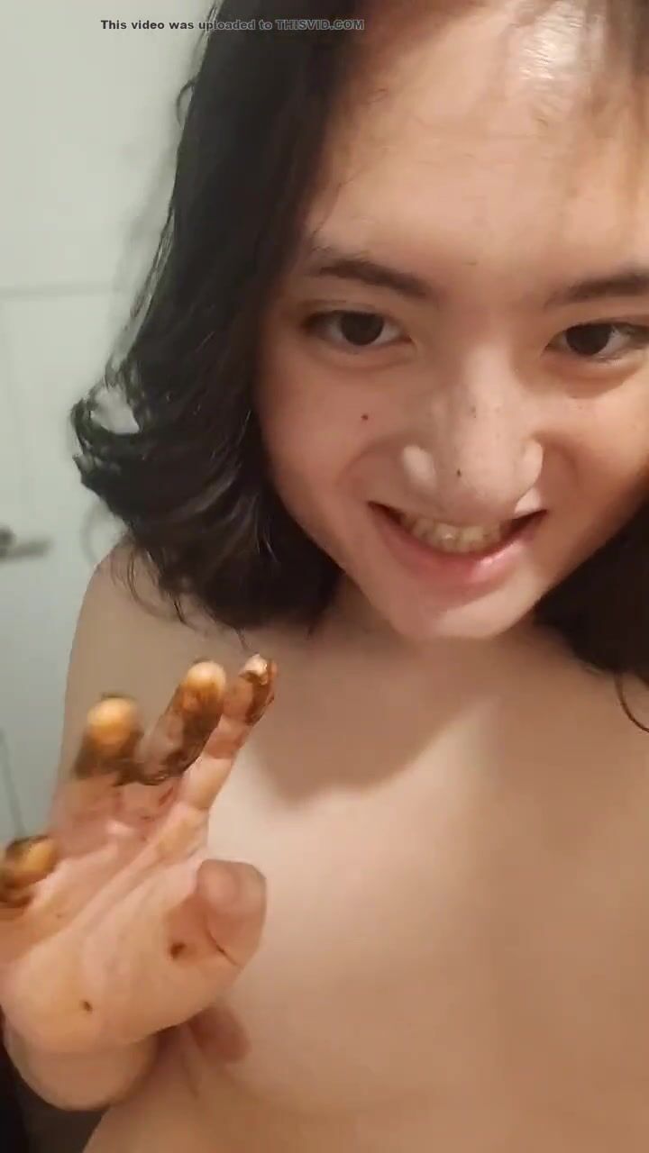 Nasty girl wipes her butt with spit and licks it