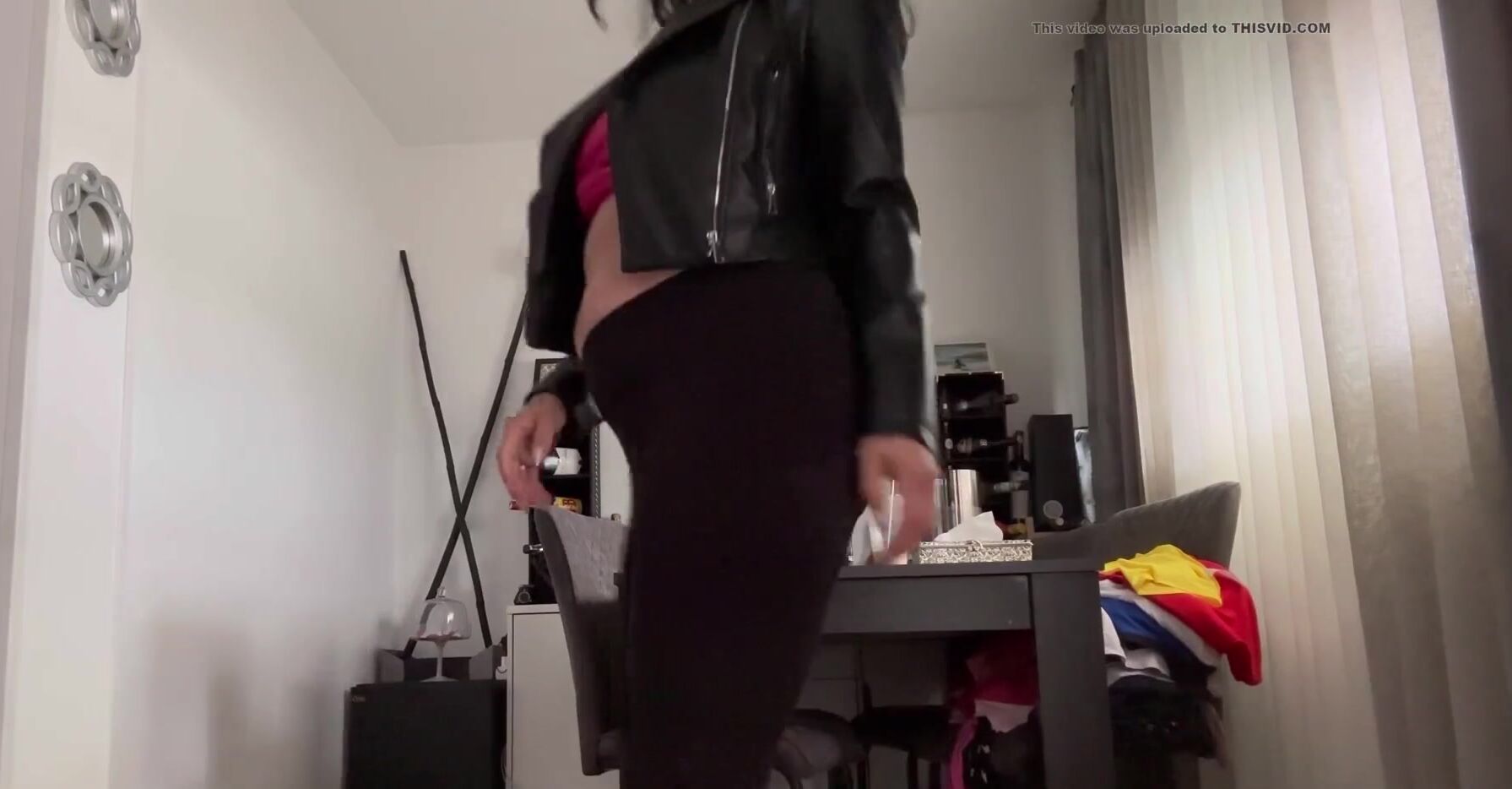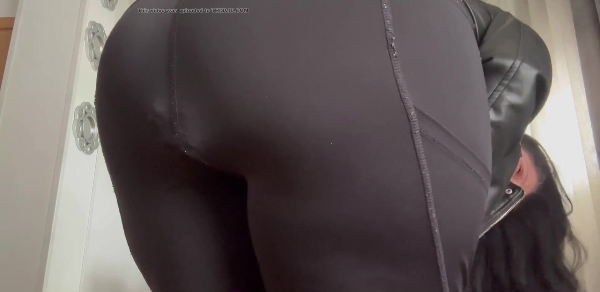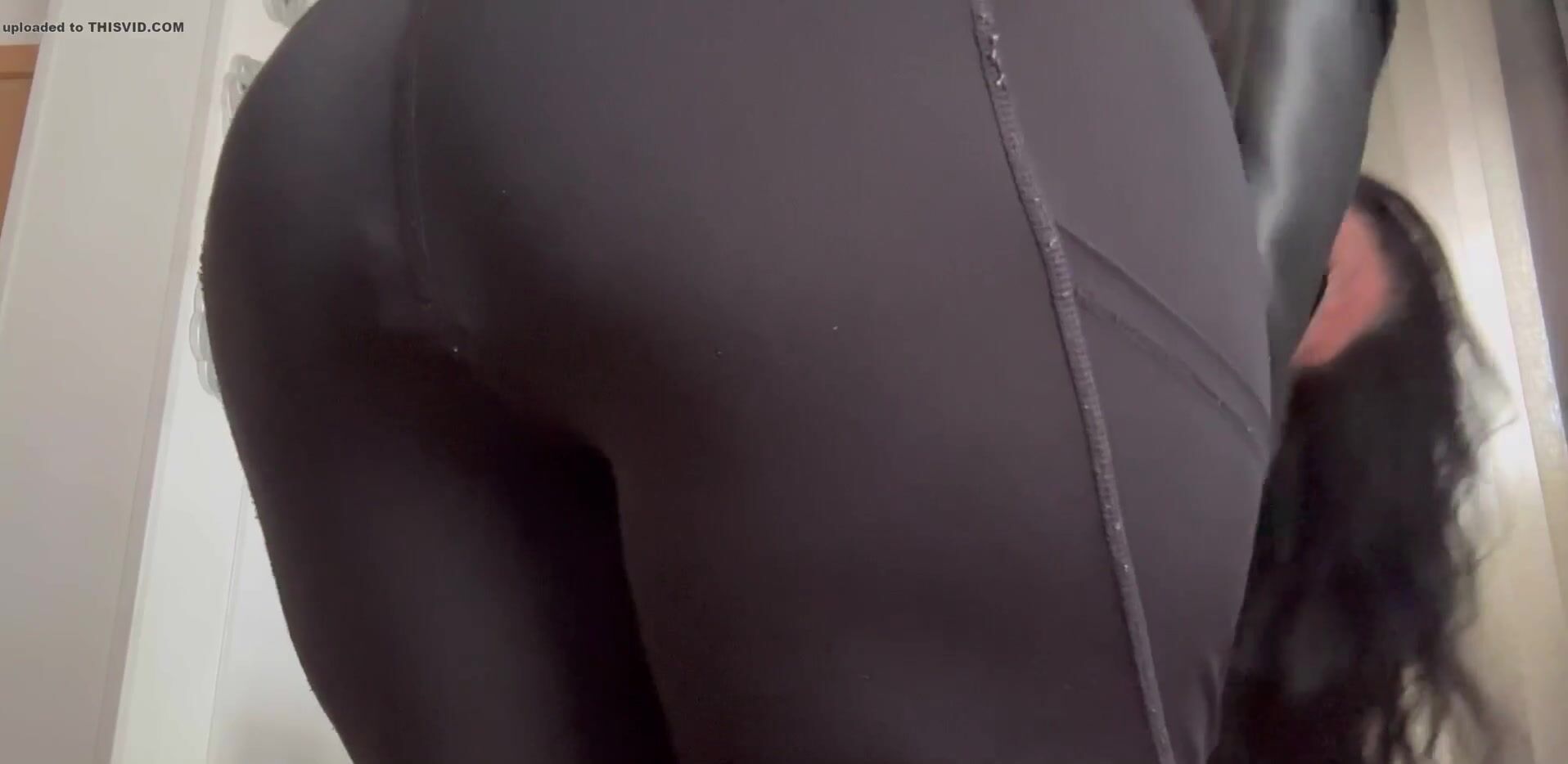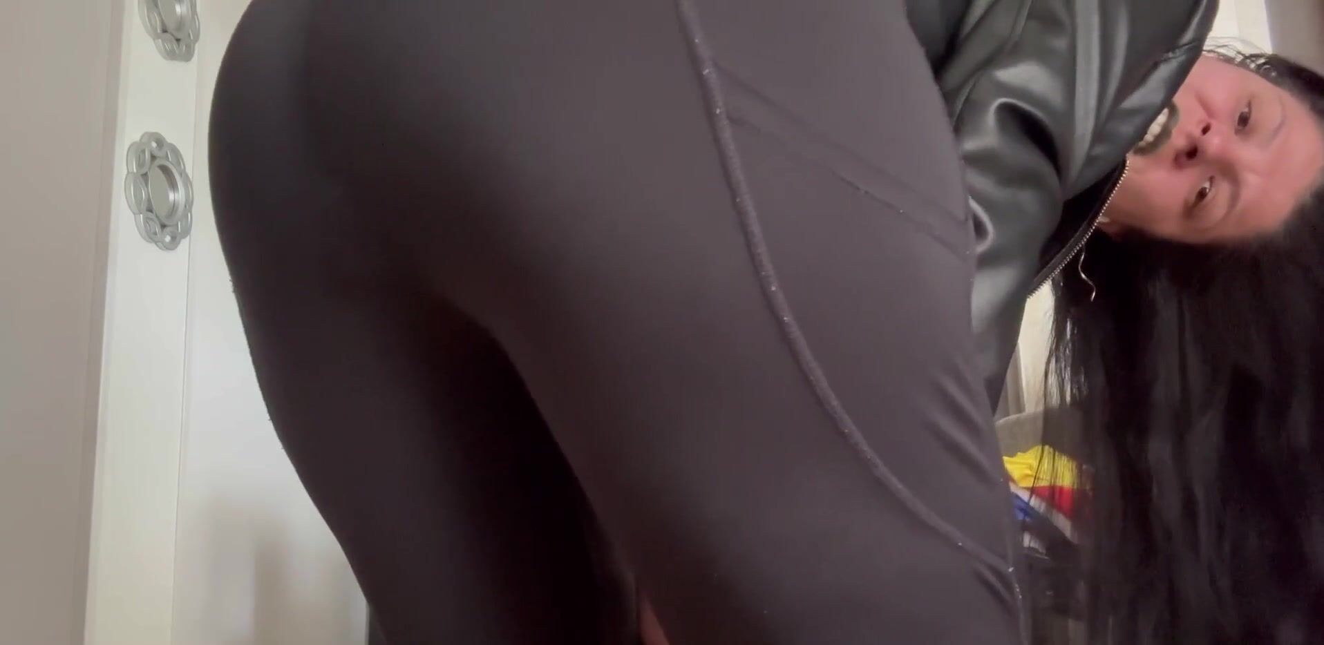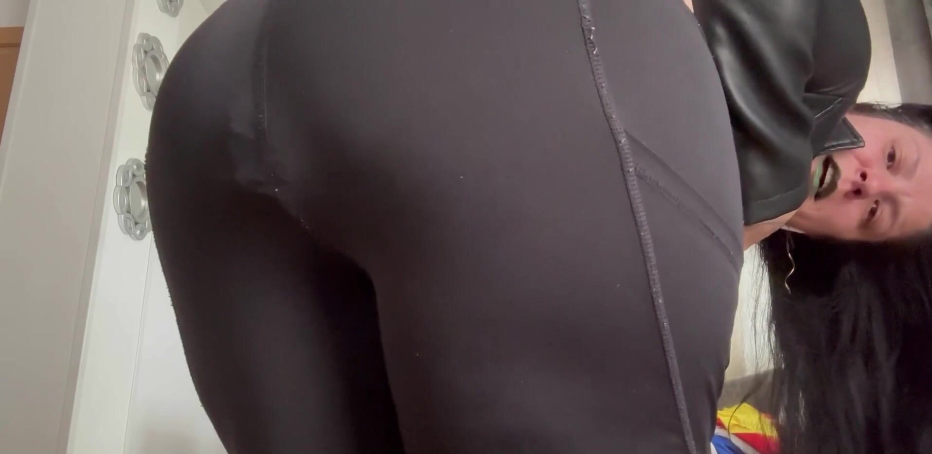 Woman poop her black leggings