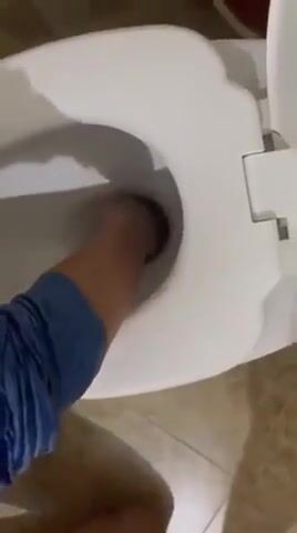 Girl open wide legs and shitting on the toilet floor