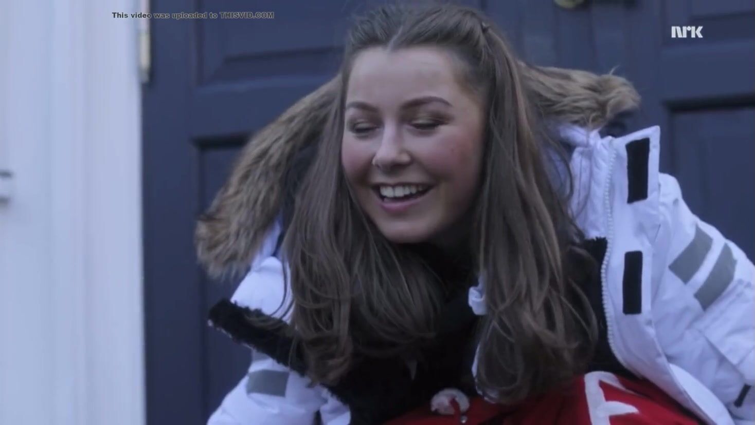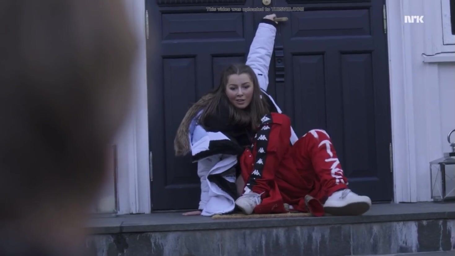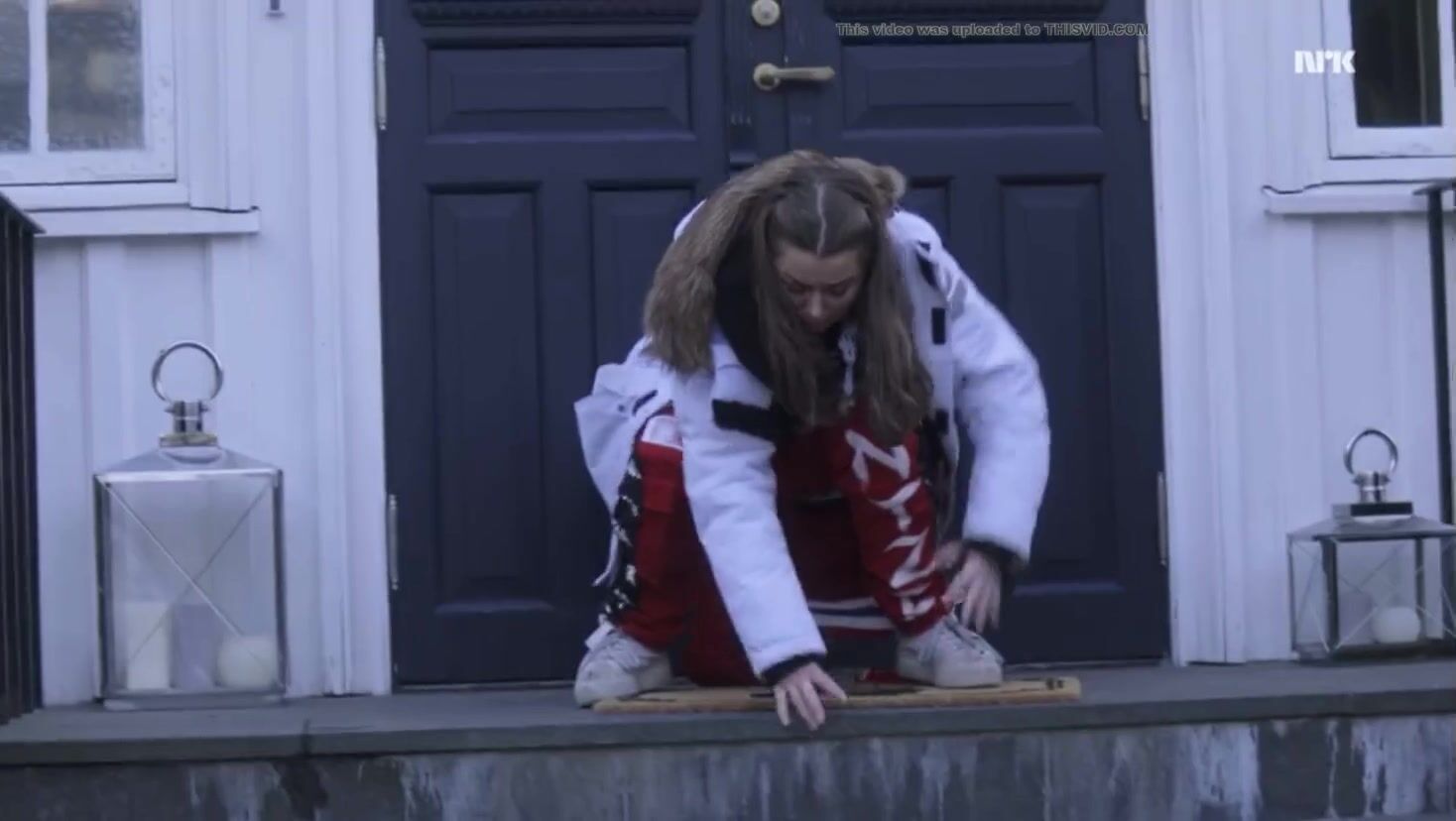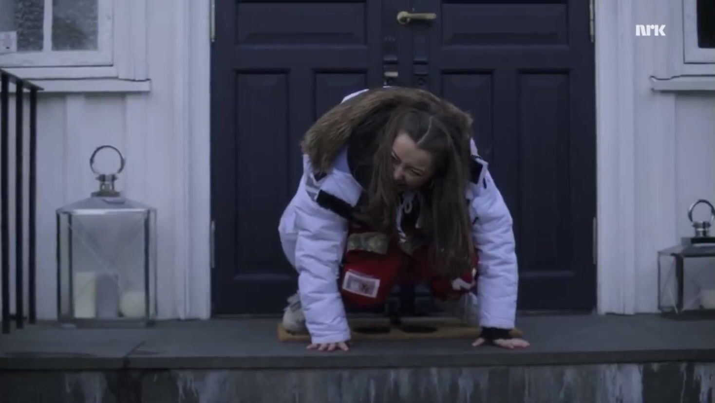 Graduate defecating on door mat - scene