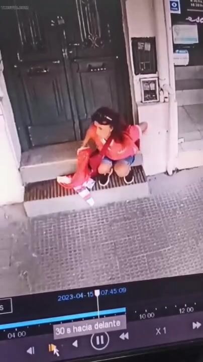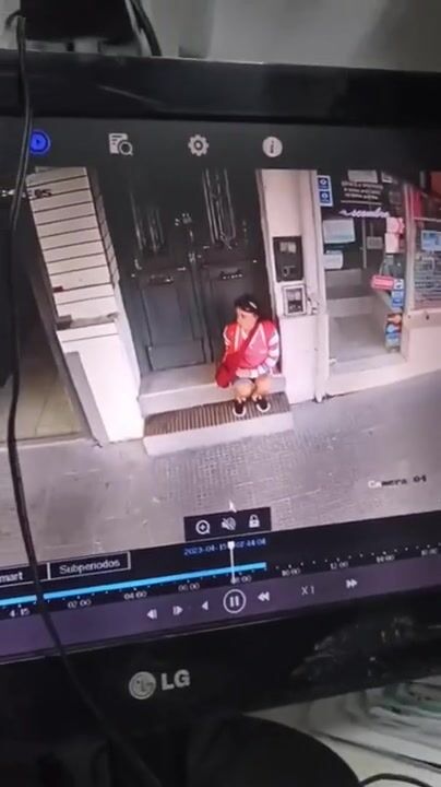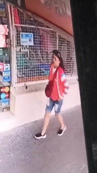 Girl shit in front of a Store