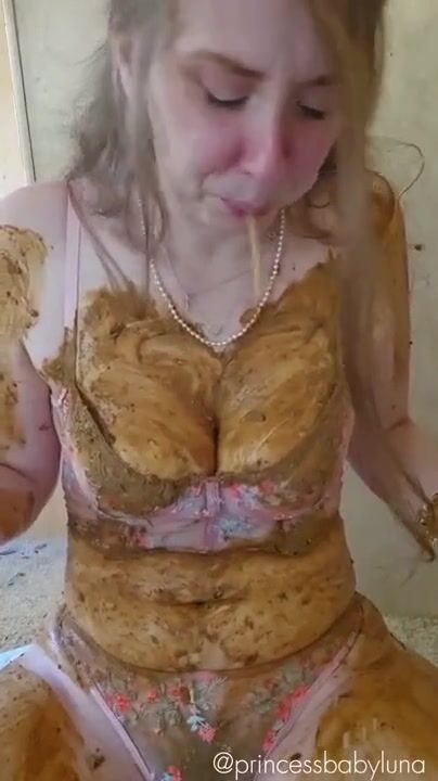 Scat lady swallows poo..