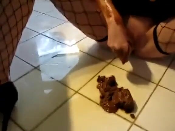 Girl open wide legs and shitting on the toilet floor