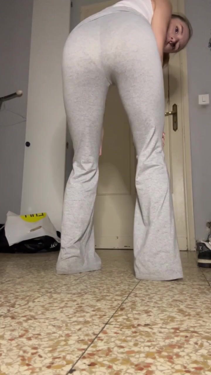 girl poops grey leggings