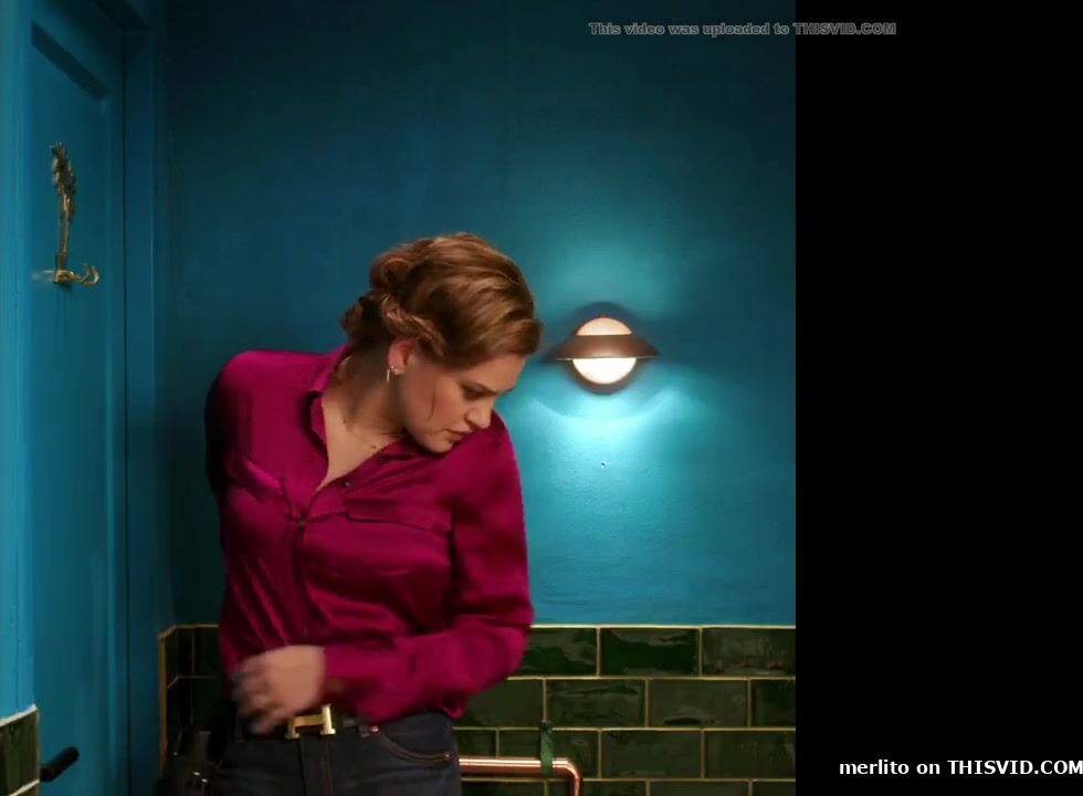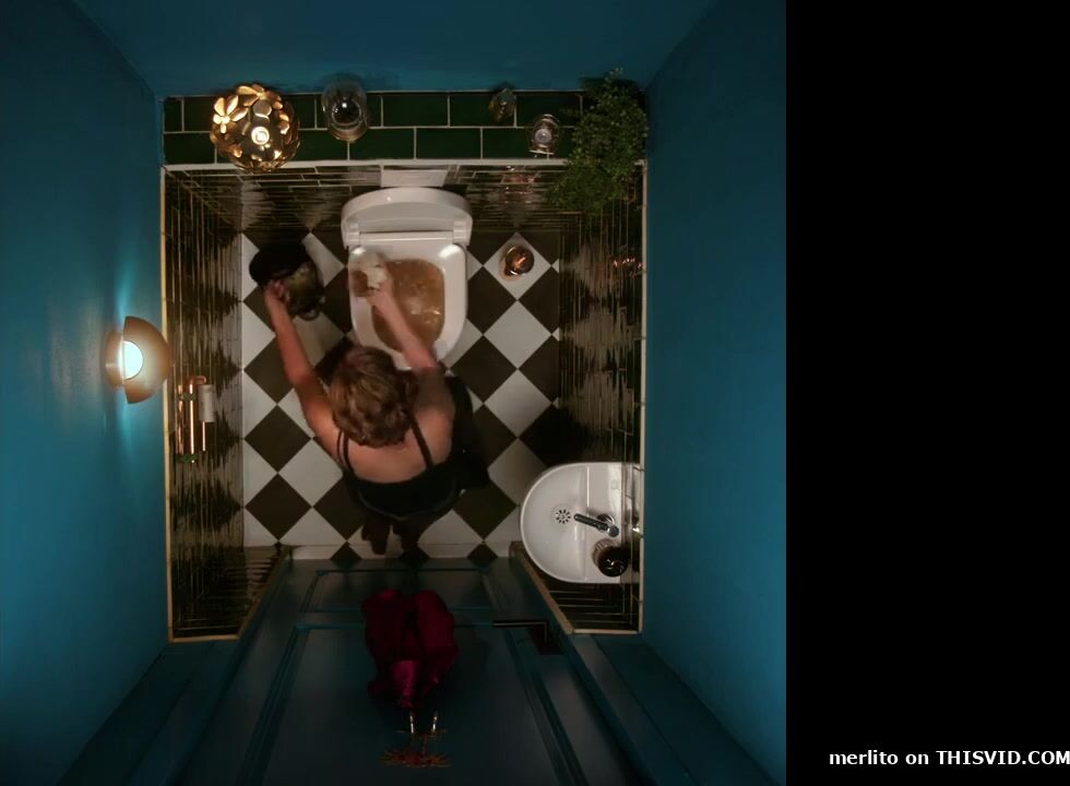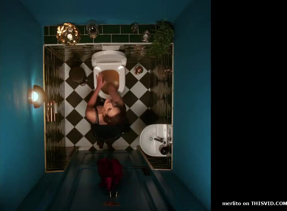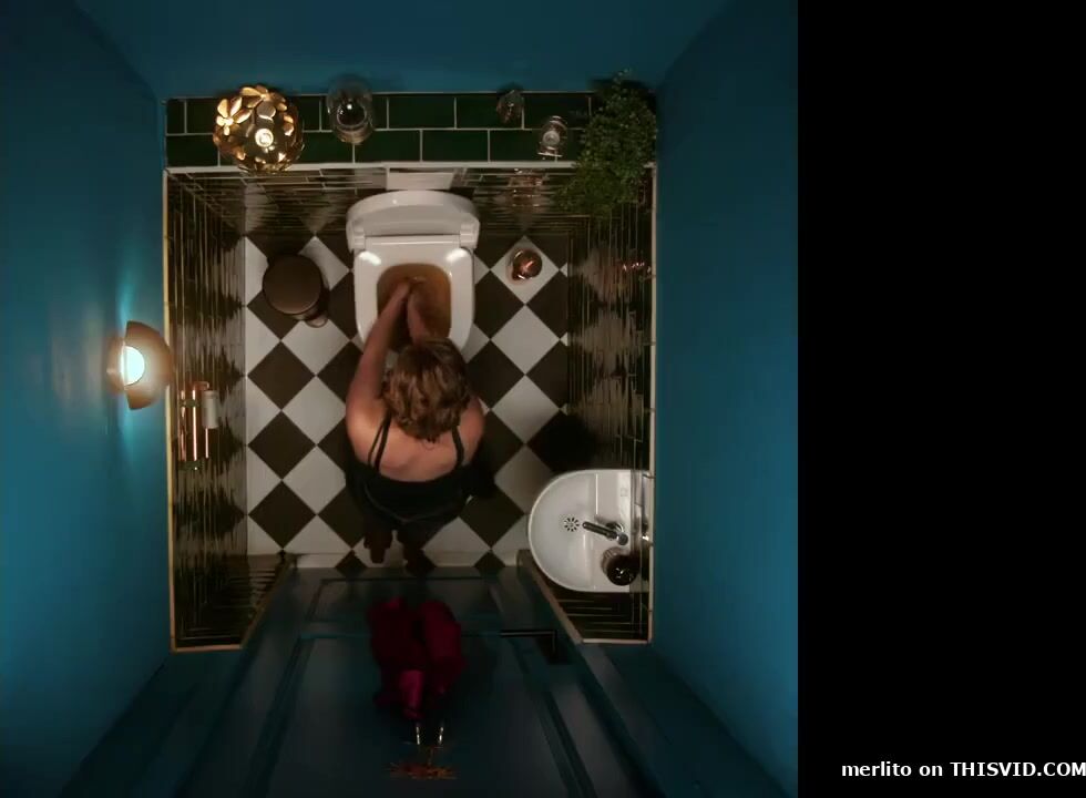 Sexy waitress desperate poop in job toilet
