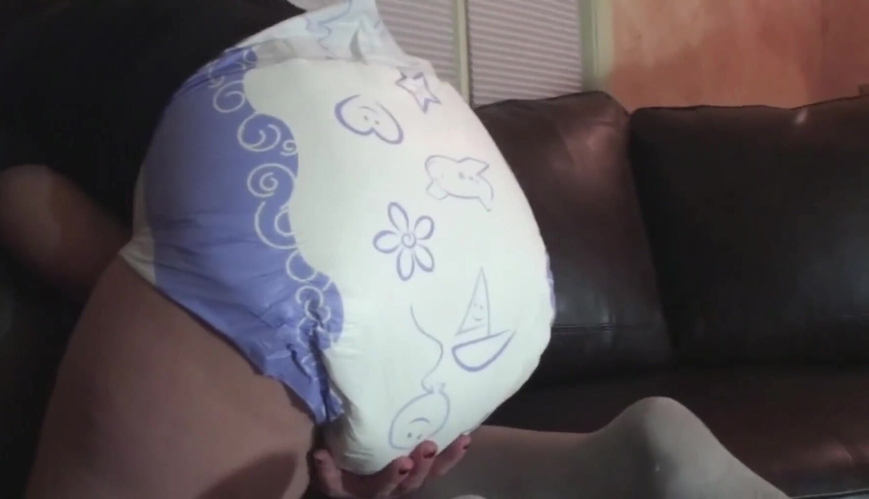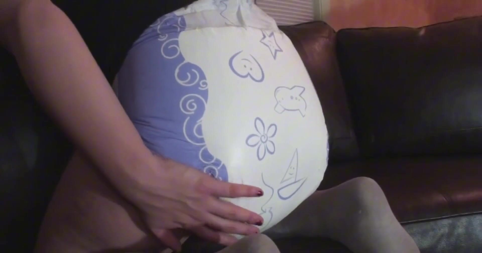 Girl can’t hold it in anymore and blows diaper up