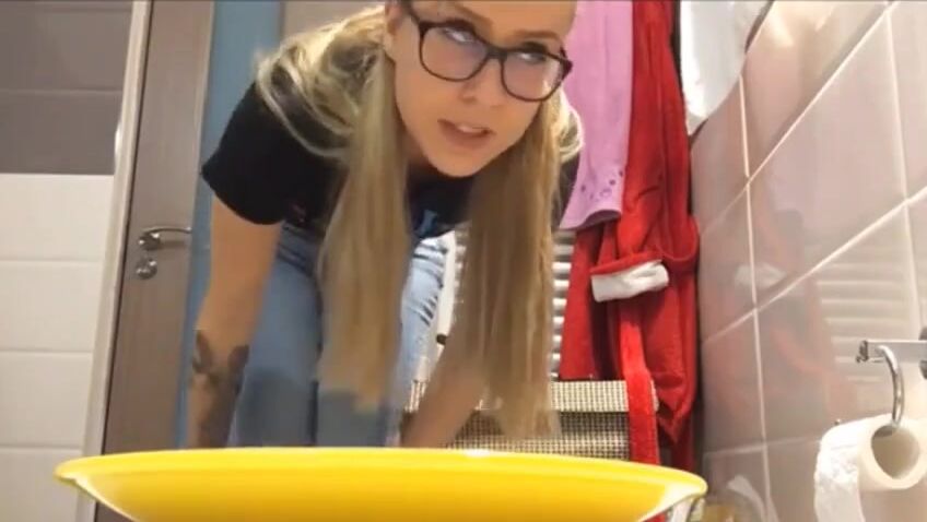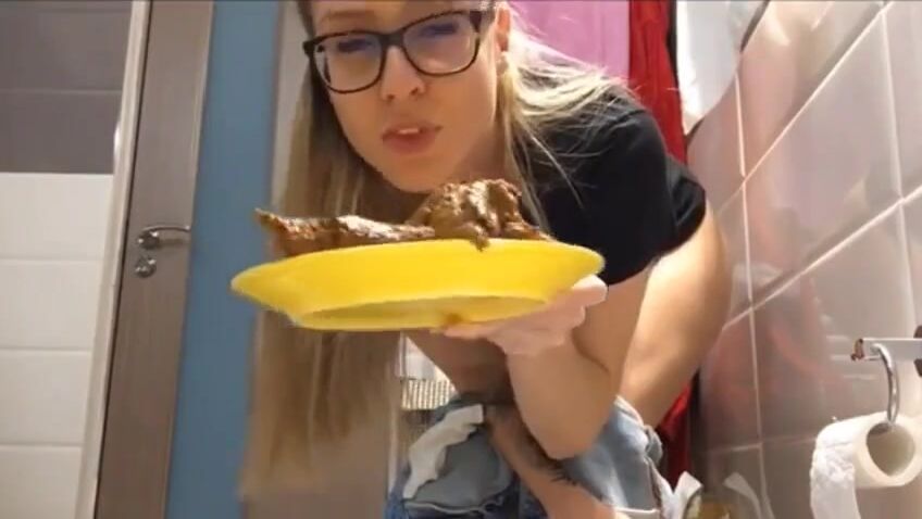Sexy student girl shits in plate