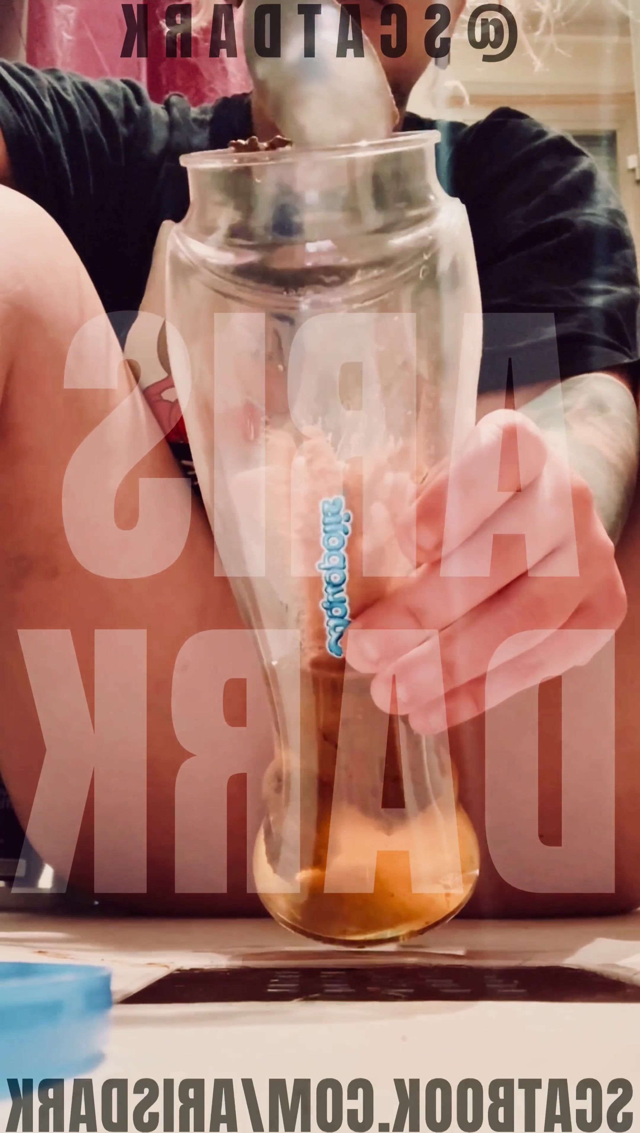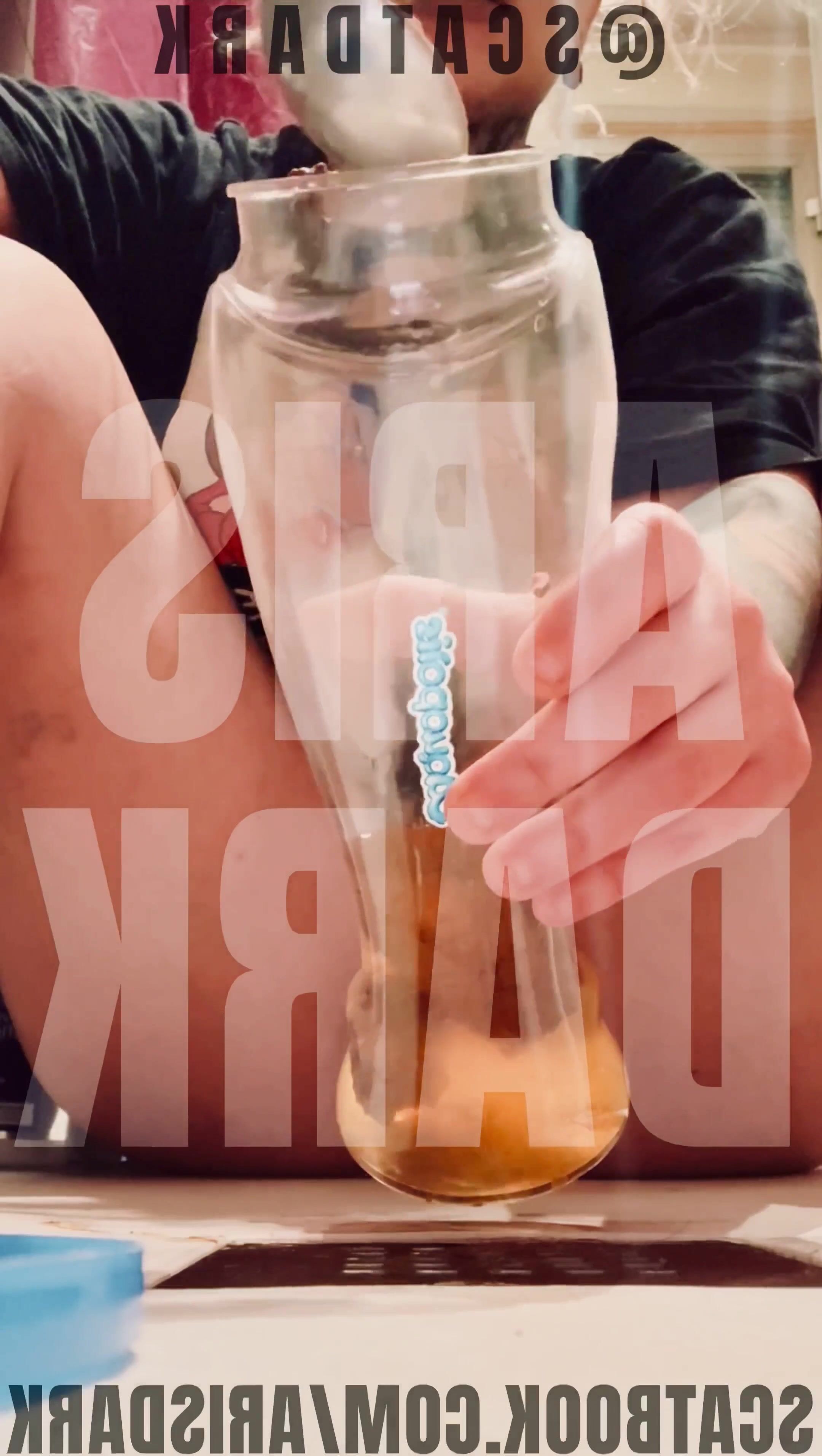 Girl in glasses fucks her ass and shits