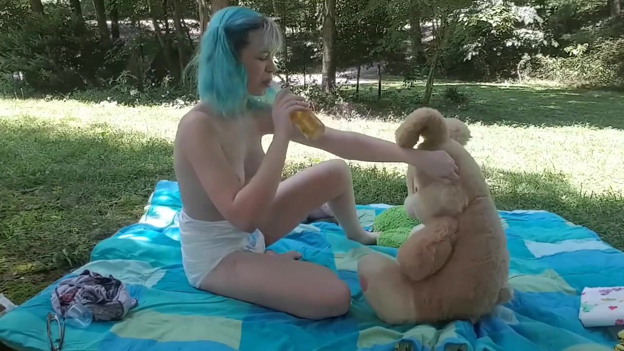 Girl messes diaper outside in the park..