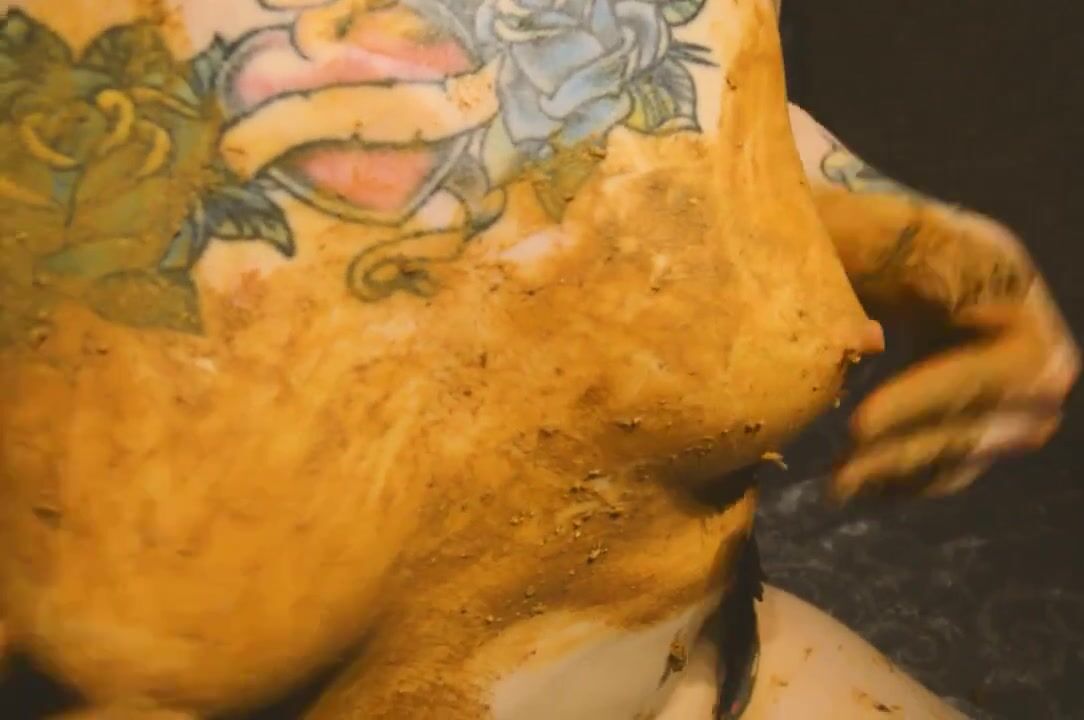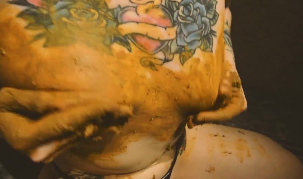 Smearing saved shit and fresh shit and stuffing it in