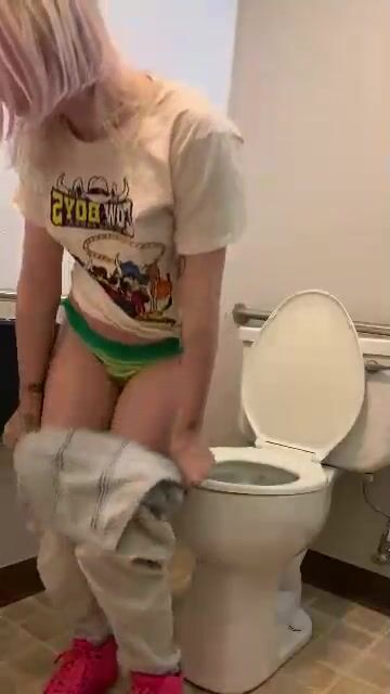 cute and sexy naked dark blonde crapping and peeing