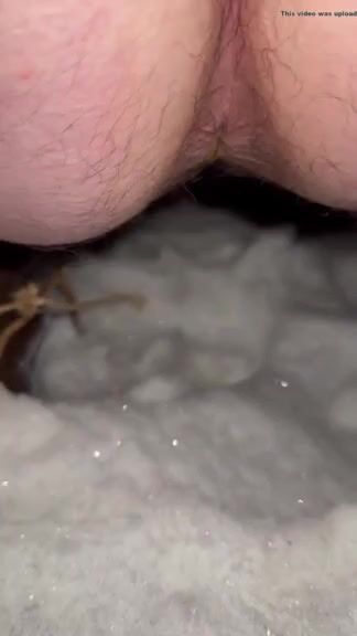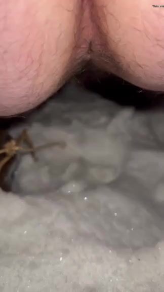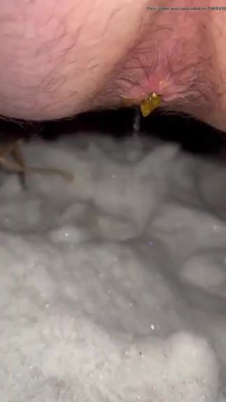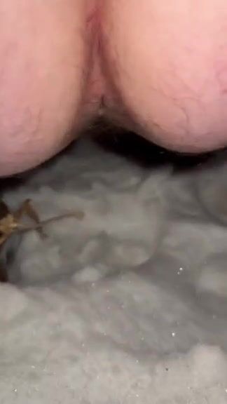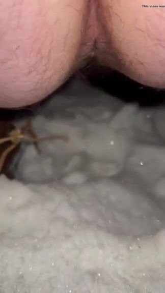 Dirty hairy ass slut shitting and pissing on the snow